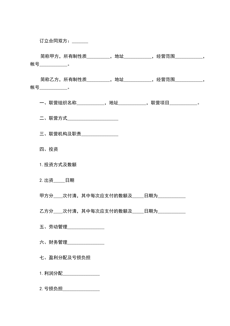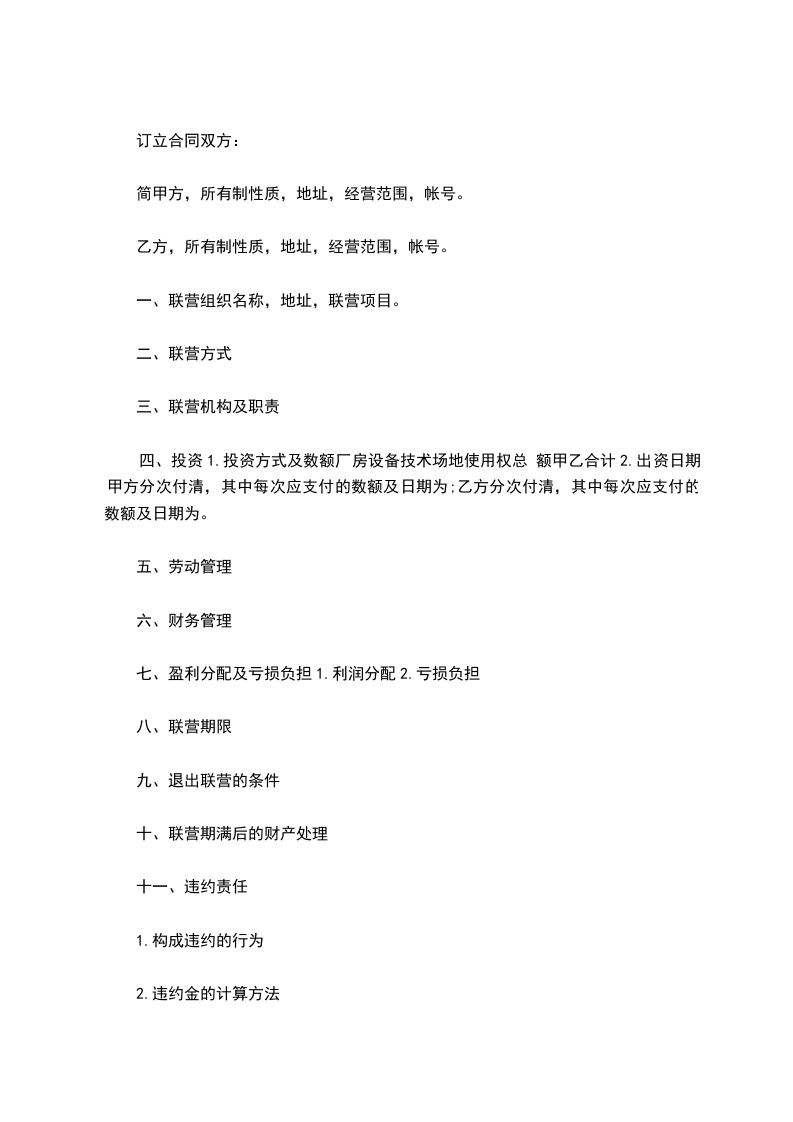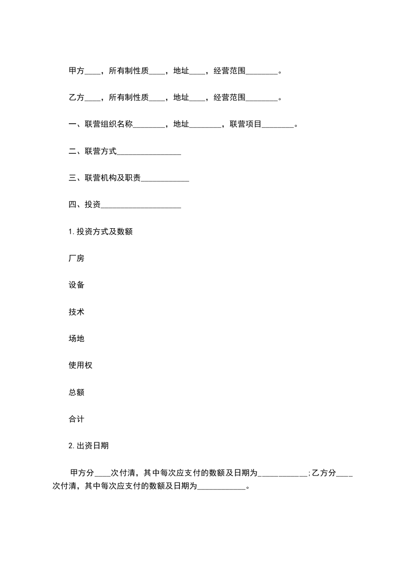本合同自 年 月 日 时起生效。合同正本一式 份,联营方各执1份;合同副本一式 份,分别送 等单位各1份。