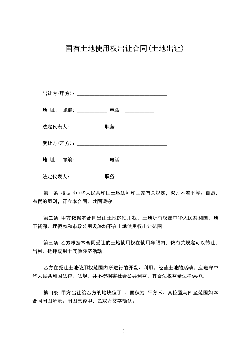 第一条 根据《中华人民共和国土地法》和国家有关规定,双方本着平等、自愿、有偿的原则,订立本合同,共同遵守。