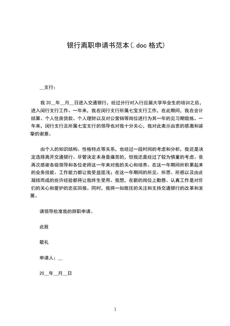由个人的知识结构、性格特点等关系,也经过一段时间的考虑和分析,我还是决定选择离开交通银行。尽管决定本身是痛苦的,但我还是经过了较为慎重的考虑。我再次感谢各级领导和各位老师这一年来对我的关心和培养。在这一年期间所积累起来的业务技能、工作能力都让我受益匪浅;在这一年期间的所见、所思、所感以及由此凝结而成的些许经验都将让我终生受用。我想,在新的岗位上勤恳、认真工作是对你们的关心和爱护的忠实回报。同时,我将一如既往的关注和支持交通银行的改革和发展。