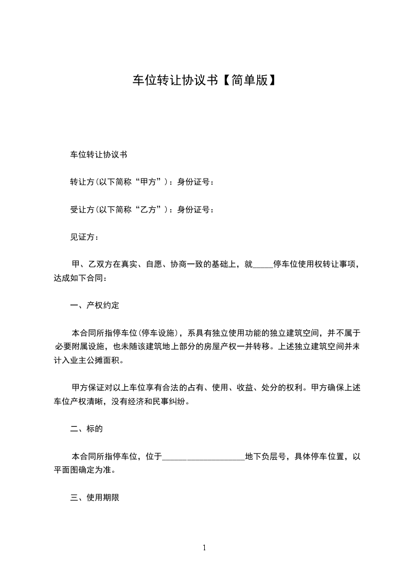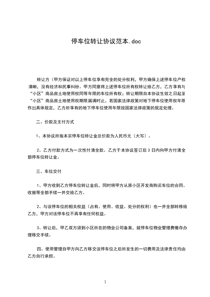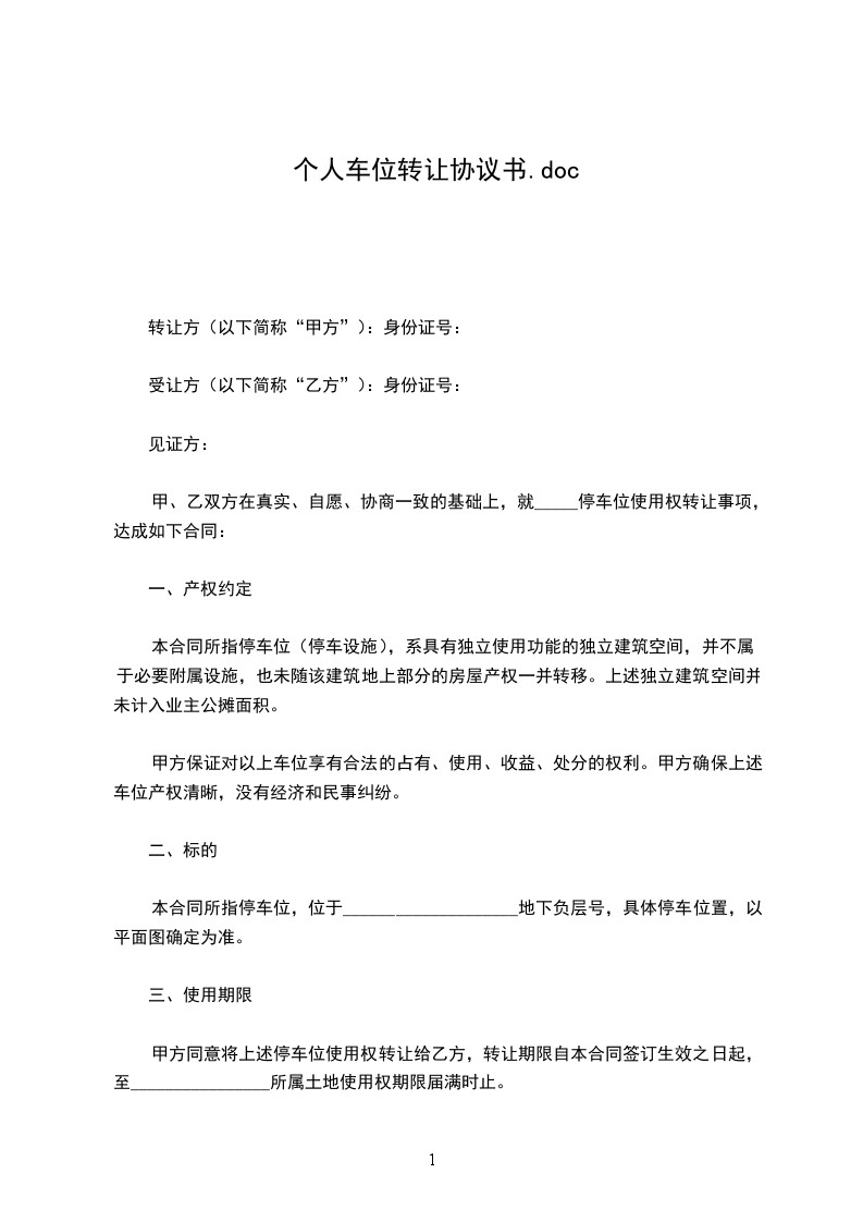 一、甲方将湘湖人家三期编号为389的停车位使用权转让给乙方,停车位属性以开发商。