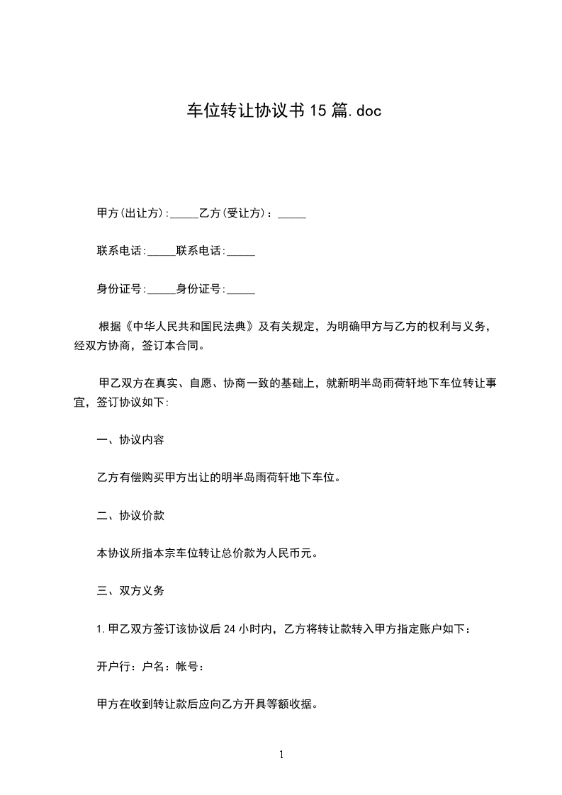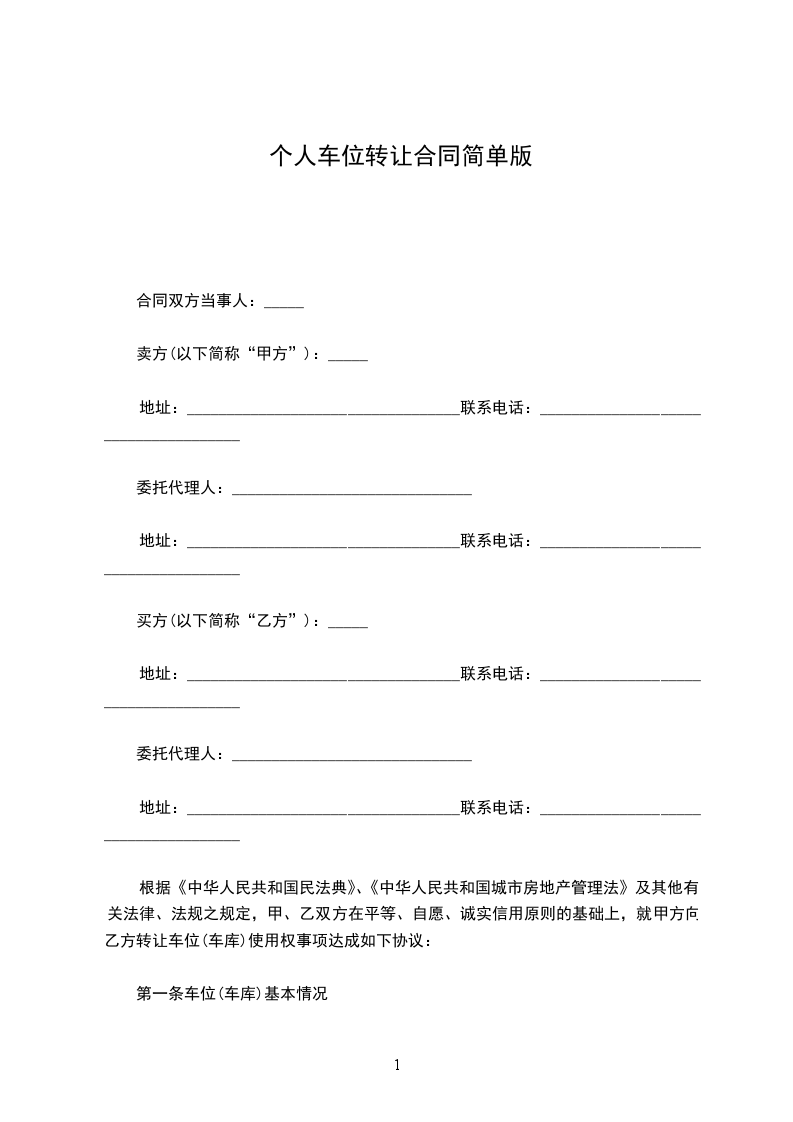 依据《中华人民共和国民法典》等法律、法规的规定,甲乙双方就湘湖人家三期编号为389的车位使用权(以下简称该停车位)转让的相关事宜经友好协商,达成一致意见后订立本合同。