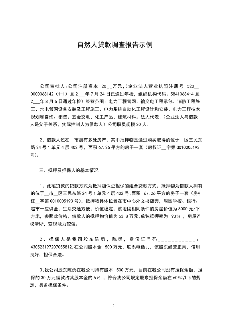 公司审批人:公司注册资本20__万元,(企业法人营业执照注册号520__0000068142(1-1)且2___年7月24日已通过年检,组织机构代码:58410684-4且2___年8月6日通过年检)经营范围:电力工程管网、输变电工程承包、消防工程施工、水电管网设备安装及工程施工、电力系统自动化工程设计和安装、电力工程技术规划和咨询、销售、五金交电、化工产品、建筑材料。法人代表:(企业法人与借款人是父子关系,实际控制人为借款人)公司职员规模20人。