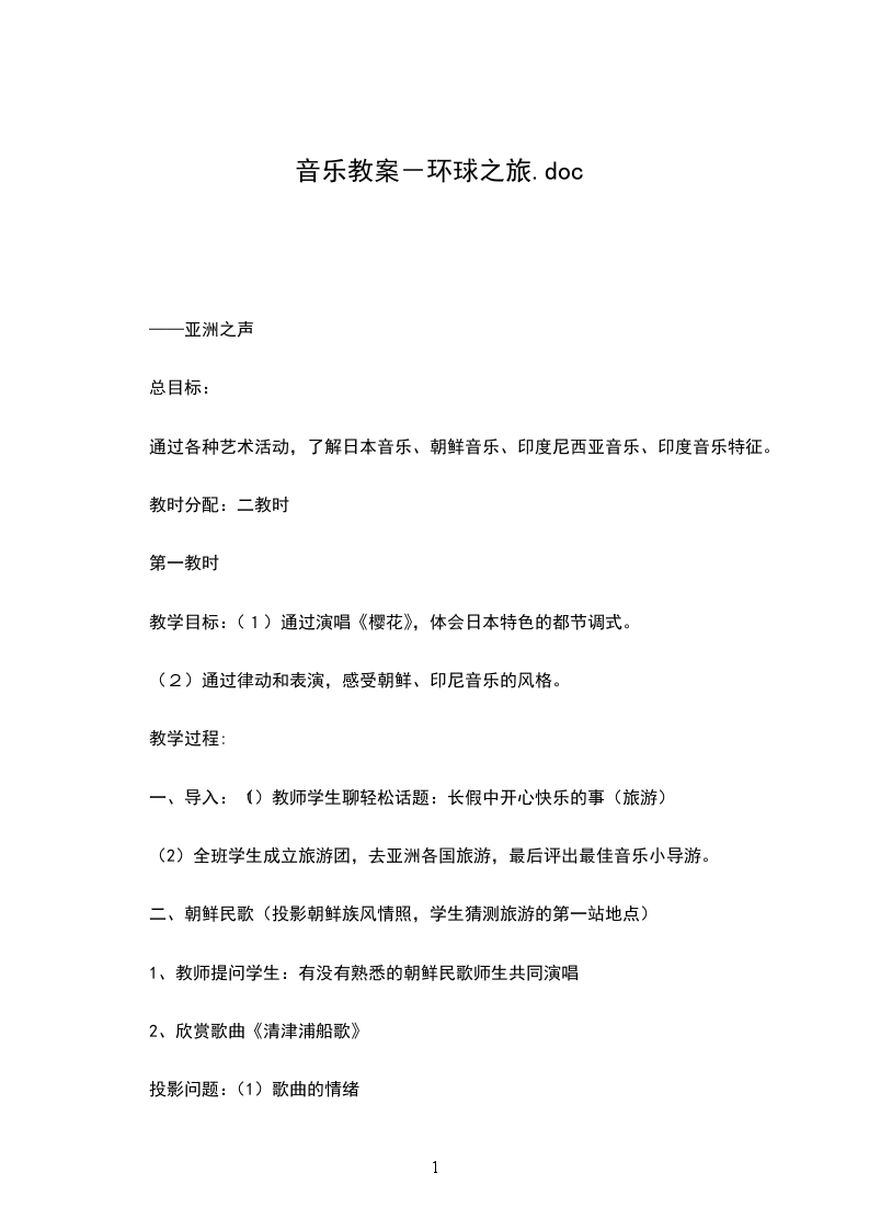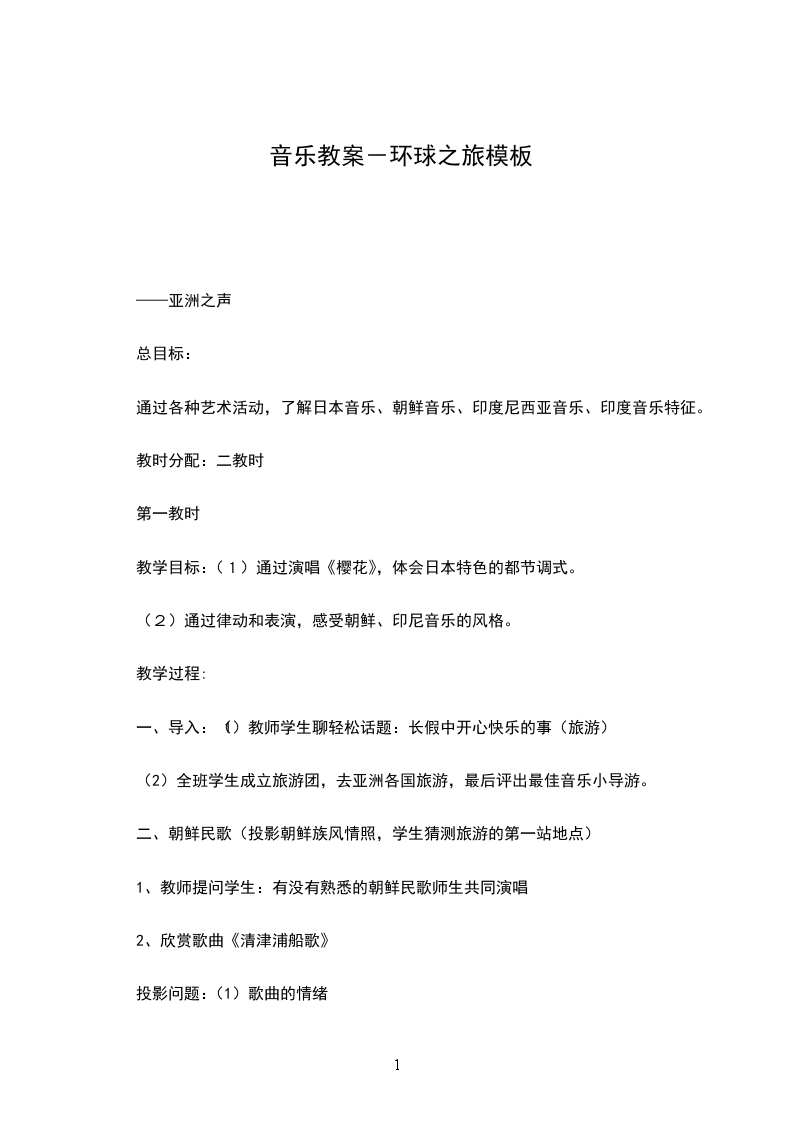 (2)通过律动和表演,感受朝鲜、印尼音乐的风格。