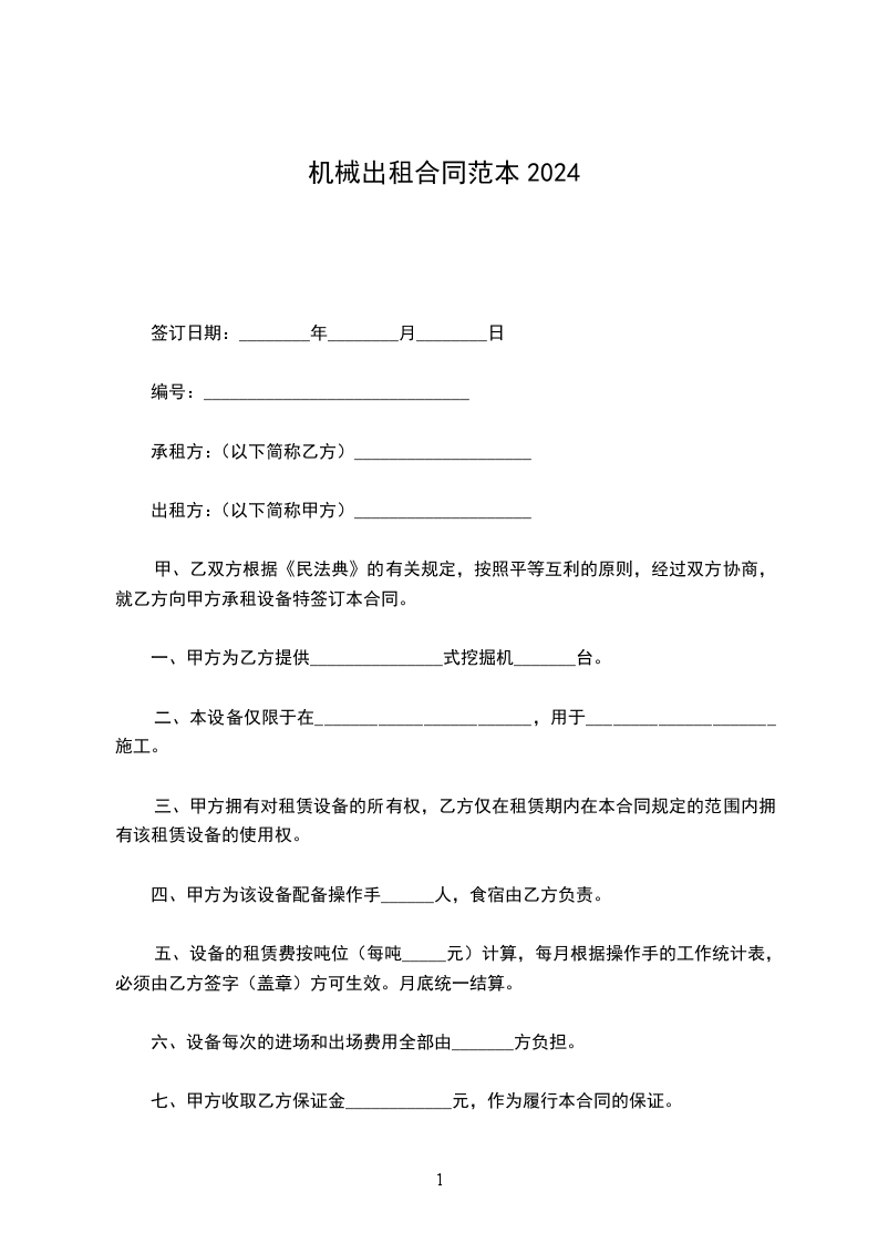一、甲方为乙方提供_______________式挖掘机_______台。
