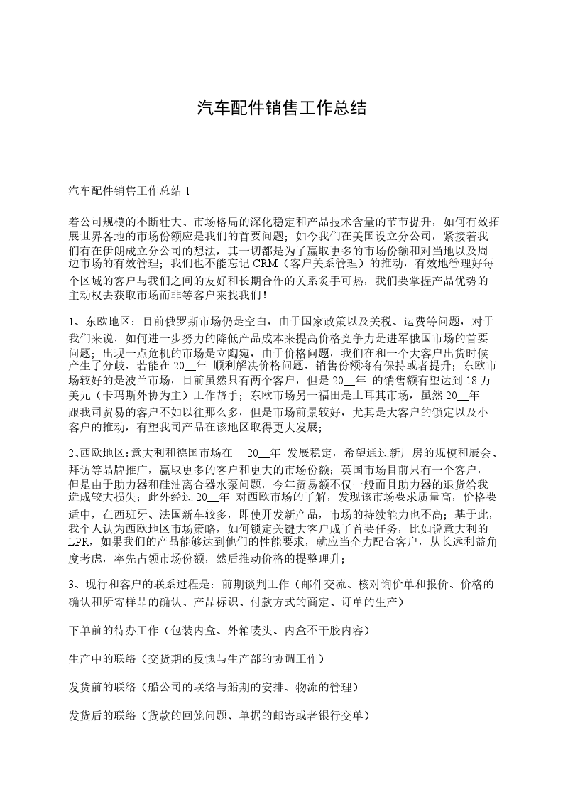 汽车配件销售工作总结1