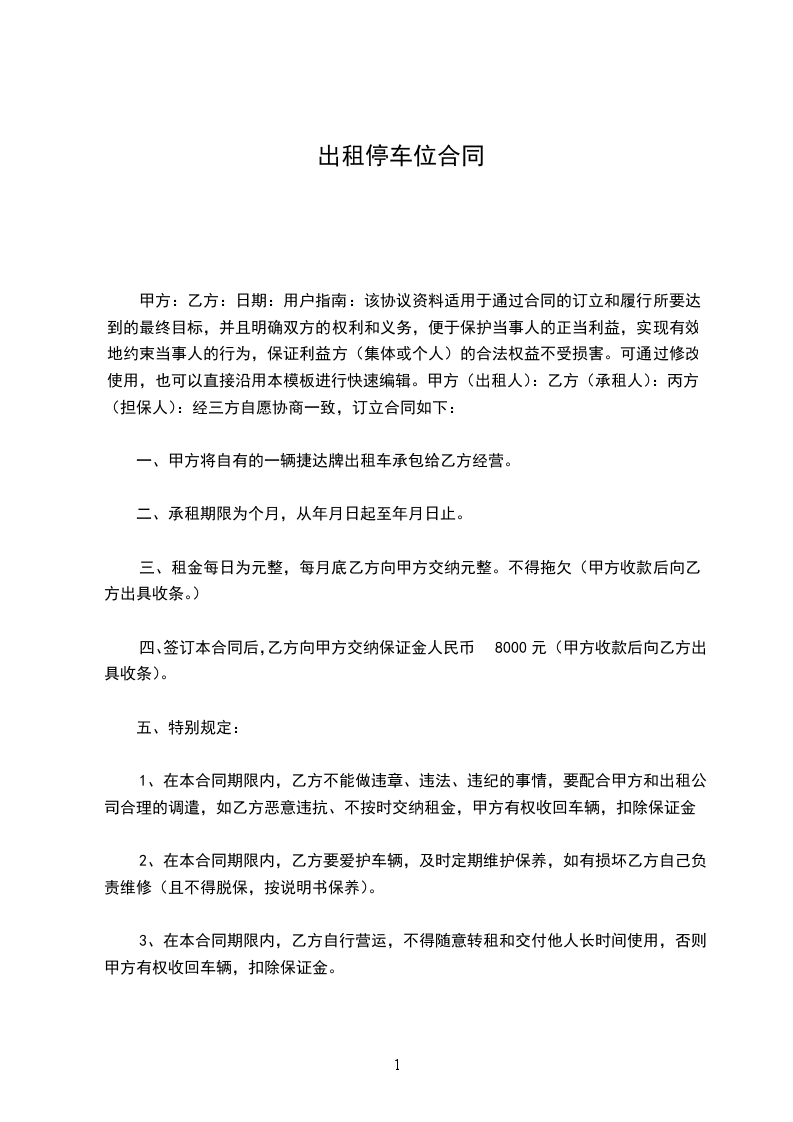 5、乙方出租车位后停车管理费用由乙方的承租人交纳,乙方负有连带责任。
