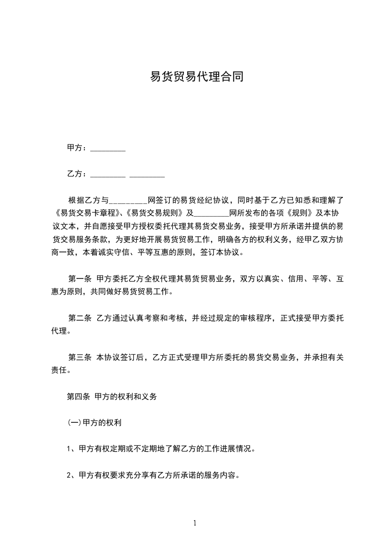 甲乙双方本着合作共赢,共求发展的原则,经充分协商,双方就传统贸易,服务贸易(以下简称产品)代理问题达成一致,进一步明确双方权利义务,合作期限等具体事项,特依法签订本代理合同。