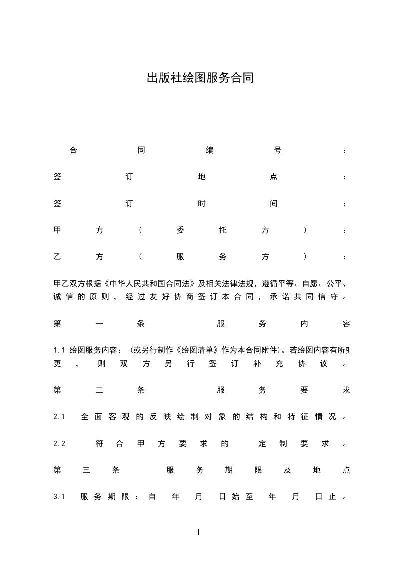 1.1 绘图服务内容: (或另行制作《绘图清单》作为本合同附件)。若绘图内容有所变更,则双方另行签订补充协议。