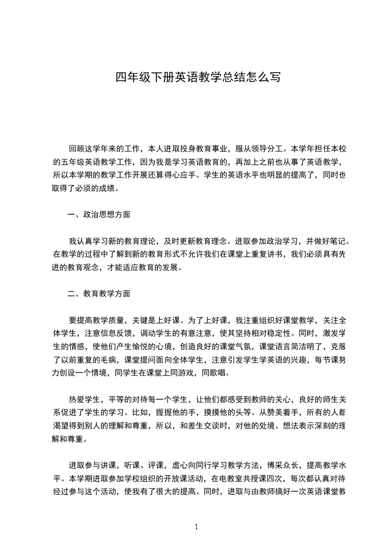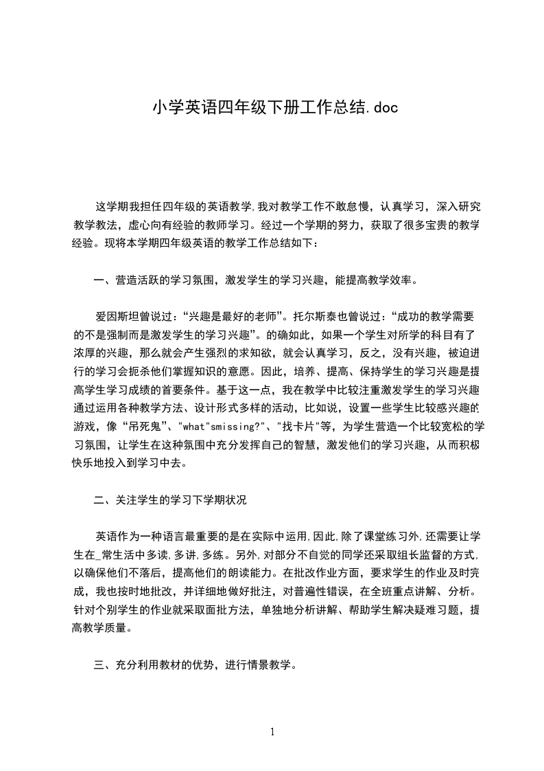 这学期我担任四年级的英语教学,我对教学工作不敢怠慢,认真学习,深入研究教学教法,虚心向有经验的教师学习。经过一个学期的努力,获取了很多宝贵的教学经验。现将本学期四年级英语的教学工作总结如下: