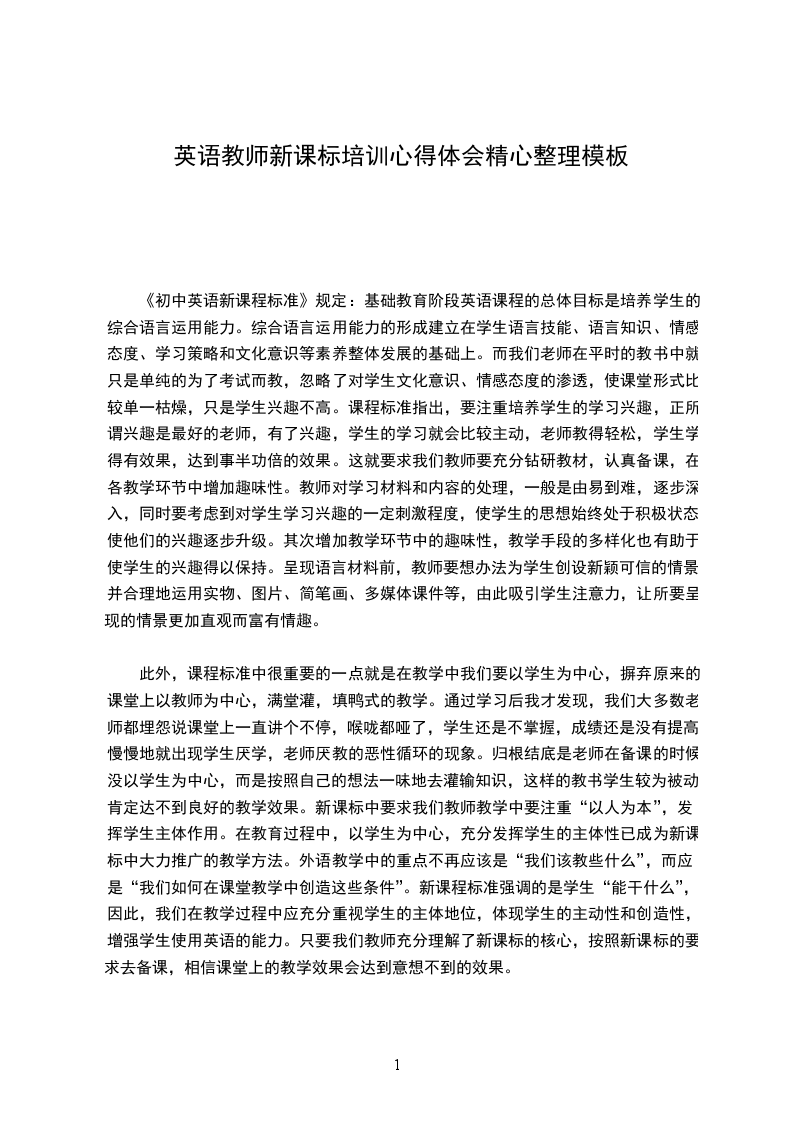 此外,课程标准中很重要的一点就是在教学中我们要以学生为中心,摒弃原来的课堂上以教师为中心,满堂灌,填鸭式的教学。通过学习后我才发现,我们大多数老师都埋怨说课堂上一直讲个不停,喉咙都哑了,学生还是不掌握,成绩还是没有提高,慢慢地就出现学生厌学,老师厌教的恶性循环的现象。归根结底是老师在备课的时候没以学生为中心,而是按照自己的想法一味地去灌输知识,这样的教书学生较为被动,肯定达不到良好的教学效果。新课标中要求我们教师教学中要注重“以人为本”,发挥学生主体作用。在教育过程中,以学生为中心,充分发挥学生的主体性已成为新课标中大力推广的教学方法。外语教学中的重点不再应该是“我们该教些什么”,而应是“我们如何在课堂教学中创造这些条件”。新课程标准强调的是学生“能干什么”,因此,我们在教学过程中应充分重视学生的主体地位,体现学生的主动性和创造性,增强学生使用英语的能力。只要我们教师充分理解了新课标的核心,按照新课标的要求去备课,相信课堂上的教学效果会达到意想不到的效果。