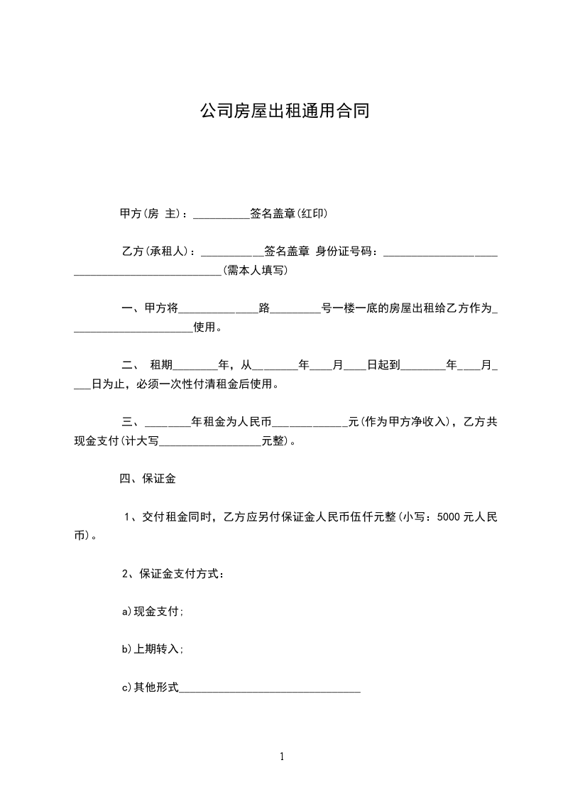 2.签订合同时乙方付给甲方押金元,合同期满甲方退还乙方。3.租期内未经协商一方不得变化租金。第四条甲方权利与义务