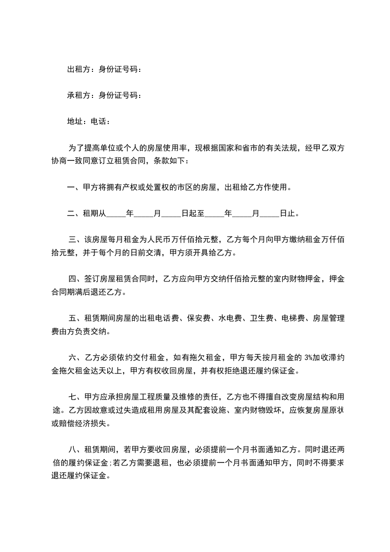1.租期为_____年_____月_____日至_____年_____月_____日。2.租期届满,甲方若继续出租乙方有权在同等条件下优先租赁。