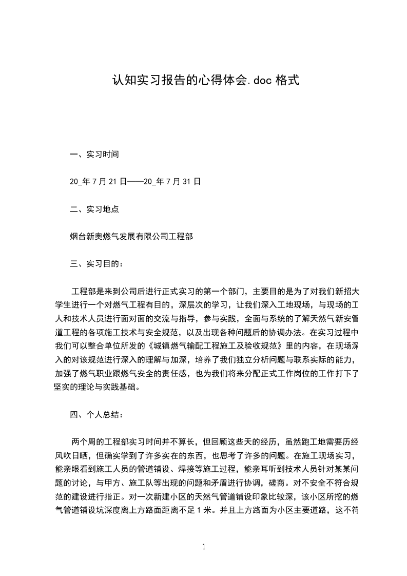 两个周的工程部实习时间并不算长,但回顾这些天的经历,虽然跑工地需要历经风吹日晒,但确实学到了许多实在的东西,也思考了许多的问题。在施工现场实习,能亲眼看到施工人员的管道铺设、焊接等施工过程,能亲耳听到技术人员针对某某问题的讨论,与甲方、施工队等出现的问题和矛盾进行协调,磋商。对不安全不符合规范的建设进行指正。对一次新建小区的天然气管道铺设印象比较深,该小区所挖的燃气管道铺设坑深度离上方路面距离不足1米。并且上方路面为小区主要道路,这不符合安全规范,如果继续挖深燃气管道铺设坑将会接触到地下停车场的顶,所以无法继续向下挖深。项目经理发现问题后及时的与开发商施工单位进行沟通与协调,经过研究,需要对下面管道铺设位置修建暗沟并通过填土加高路面的方式来解决这一安全问题。这次在现场亲眼看到了以后,将理论同实际联系起来就很直观,印象特别深刻,《城镇燃气输配工程施工及验收规范》上的规范在现场的近距离接触后得意消化,对于一些专业术语、具体的程序都有了深入的了解。有时有些工程设计虽然符合安全规范,但是在现场可以发现,此设计可能对用户将来的房屋装修造成各种不方便的影响,此时需要联系实际用户感受,与公司的设计人员取得联系进行现场观察并重新设计,既符合安全规范又方便与用户。这也让我明白了平时应多留心,多发问,多观察。不断的积累经验,我们生活的四周,许多东西都是值得去思考的,这样才能将来在自己的工作领域上站稳脚跟。最后,作为一个刚毕业入行的新人,我也应该端正自己的态度,给自己一个好的定位,不要自持甚高也不应妄自菲薄。对每项工作都应该踏实认真。对人热忱,处理好周边关系。态度诚恳,虚心向他人学习。非常感谢工程部工作人员的照顾,也非常感谢项目经理在施工现场百忙之中的答疑与指导。