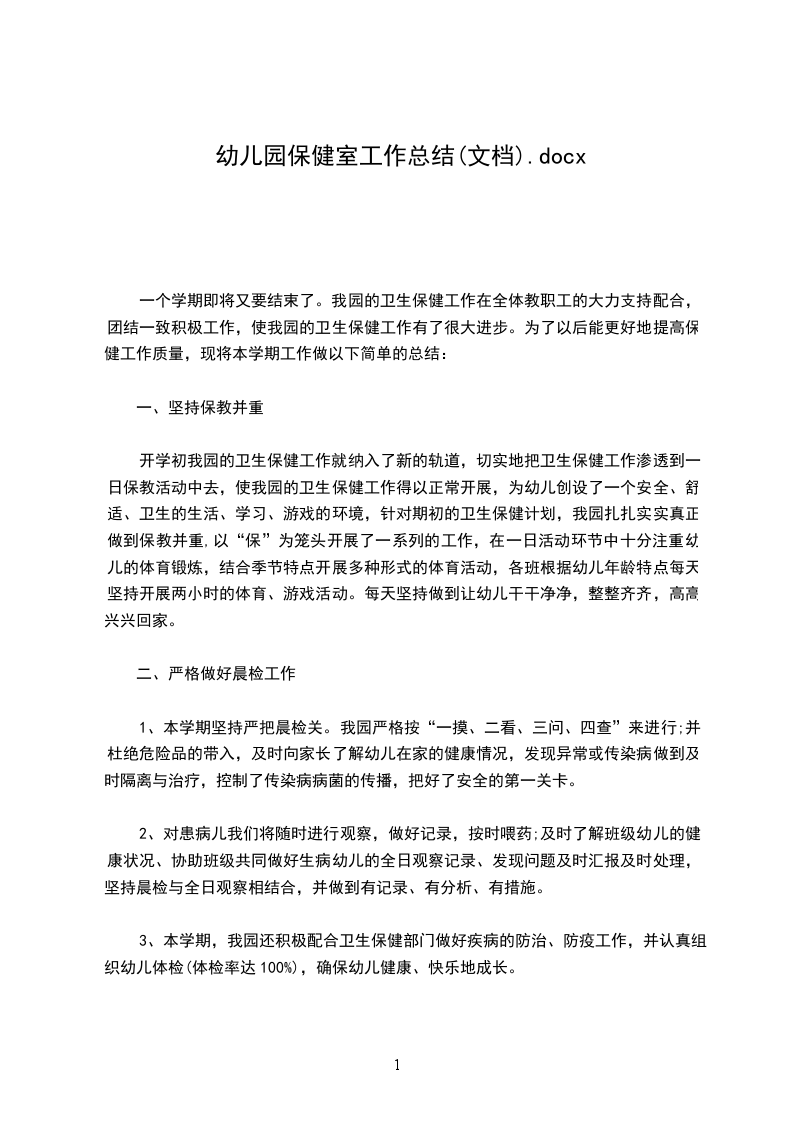 一个学期即将又要结束了。我园的卫生保健工作在全体教职工的大力支持配合,团结一致积极工作,使我园的卫生保健工作有了很大进步。为了以后能更好地提高保健工作质量,现将本学期工作做以下简单的总结: