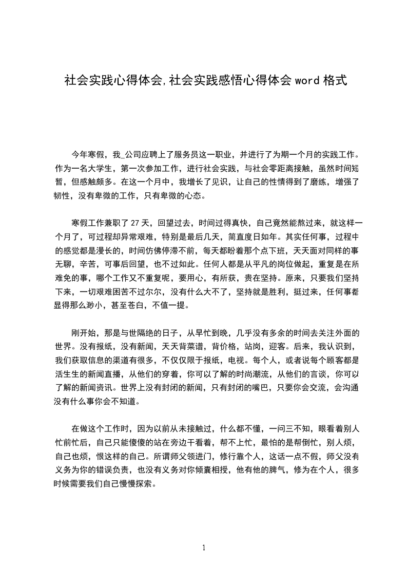 虽然在这假期我没有在我的专业知识,专业能力上有所提升·但是我感觉我懂得了太多的书本上没有的东西,假期实践增强了我的办事能力交往能力,我学会了自立,懂得了团队在工作中的作用,为以后的工作和学习提供了宝贵的经验和教训,让我开阔视野、了解社会、深入生活、回味无穷。假期实践,叫我懂得劳动成果的来之不易,叫我懂得人要打拼出一片属于自己的天空。我会以此为起点,以后更加勤奋学习,锻炼自己的各方面的能力,努力提高自己的综合实力!。