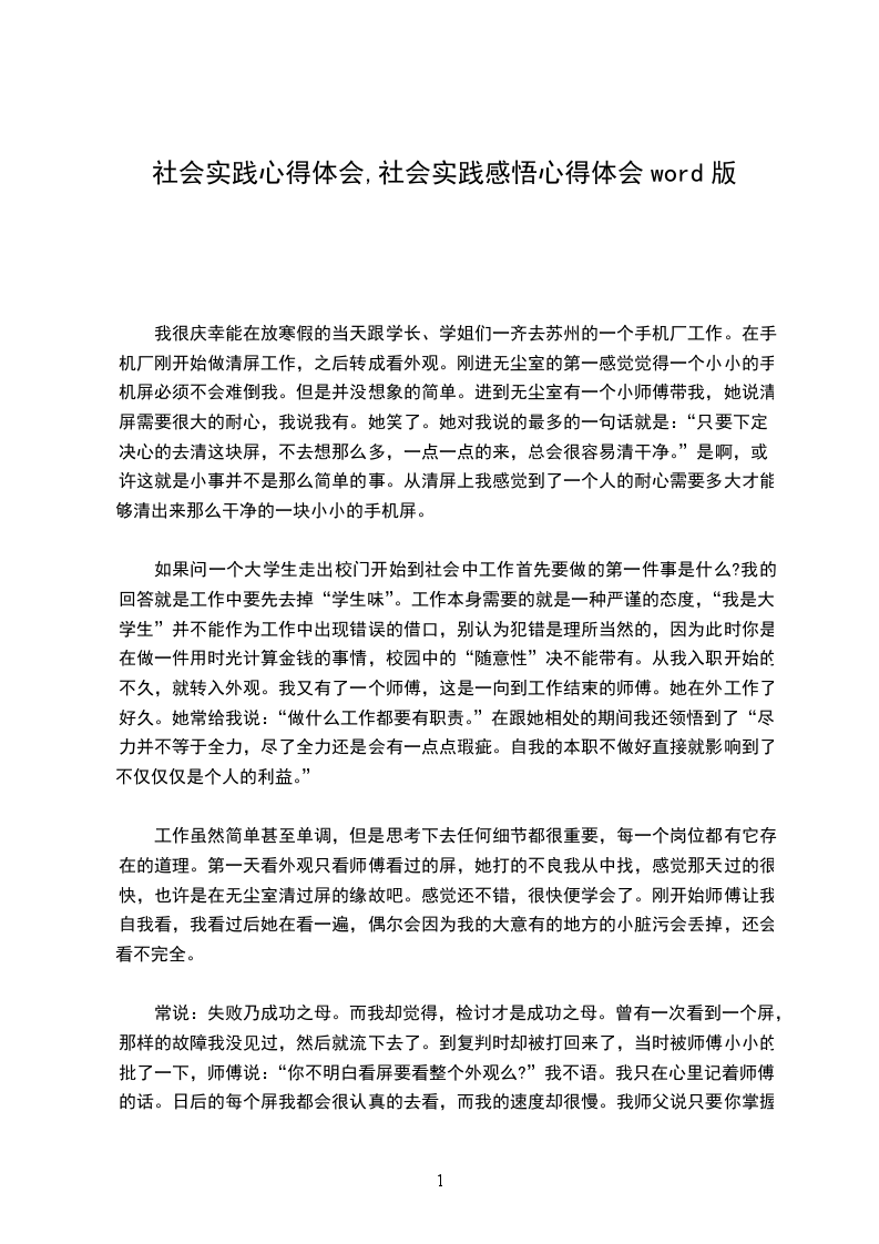 身为一名大学生,我深深地感到初会实践的重要性。并希望以后能够经常参加实践,这种社会实践活动是在大学中的社团生活所无法比拟的,只有在真正的社会实践活动中体验生活,亲身的接触社会、了解社会,才能使自己得到锻炼,才能使自己所学的理论知识得以运用到实践,才能使自己成为真正有用于实际,使自己成为真正有用于社会的学生。社会实践弥补了理论与实际的差距和不足,社会实践的意义也在于此。