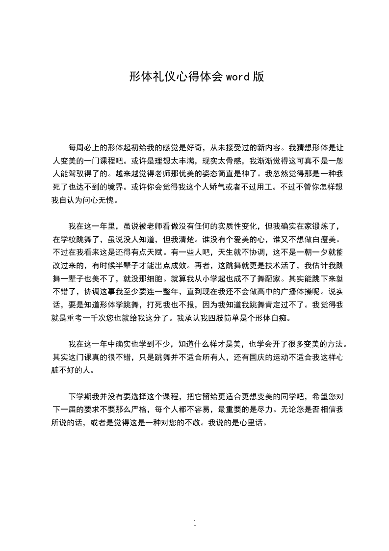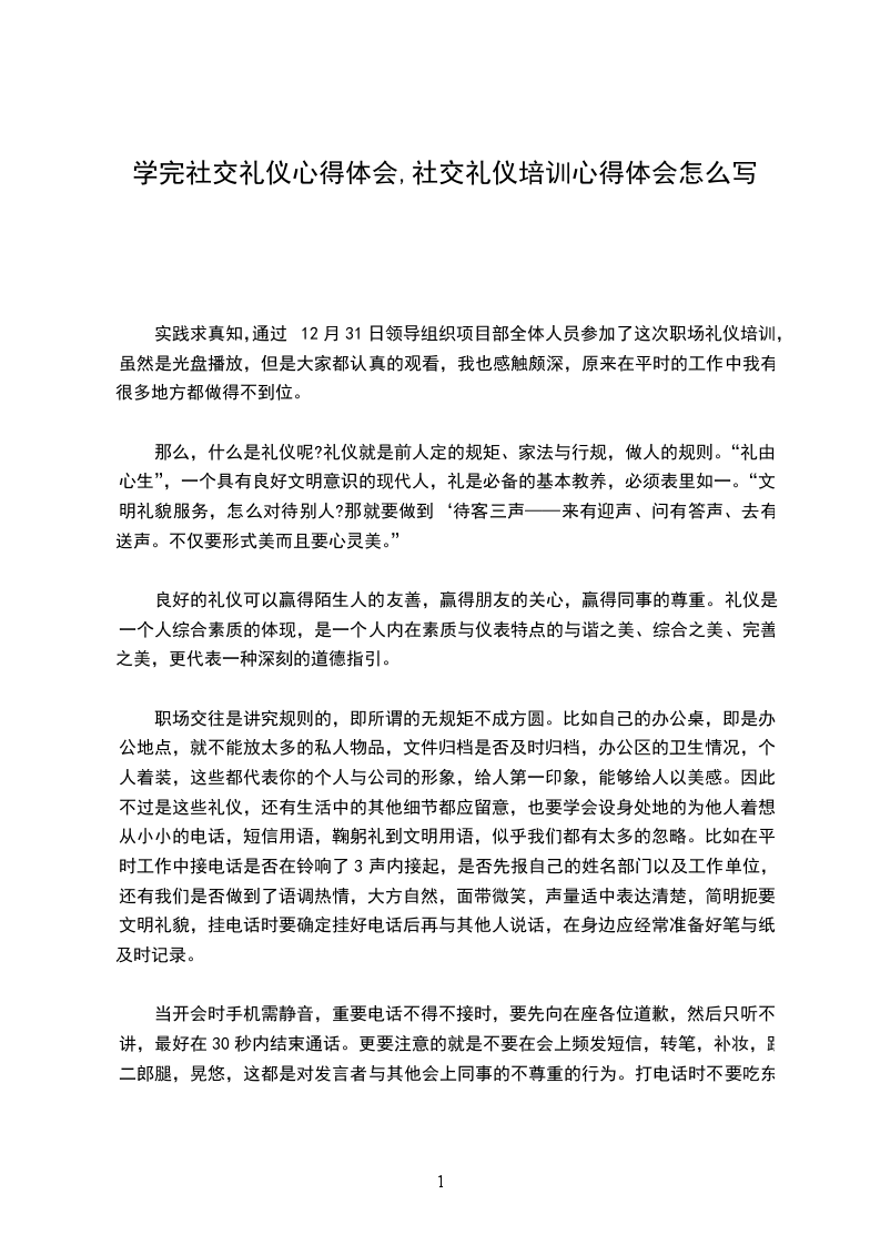 作为一个企业的管理人员,我感受到学习职场礼仪的重要性及其诸多好处:通过学习职场礼仪修养,有助于提高个人素质,体现自身价值。学习职场礼仪可以丰富人的内涵,增加人的“含金量”,从而提高自身素质的内在实力,使我们面对纷繁复杂的社会时更具勇气,更有信心,进而更充分地实现自我。学习职场礼仪有助于增进人际交往,营造和谐友善的气氛。学习职场礼仪,处处注重礼仪,能使我在社会交往中左右逢源,无往不利。使我在尊敬他人的同时也赢得他人对我的尊敬,从而使人与人之间的关系更趋融洽,使我们的生存环境更为宽松,使我们的交往气氛更加愉快。学习职场礼仪有助于促进社会文明,加快社会发展进程。职场礼仪的学习,可以使我们每位社会成员进一步强化文明意识,端正自身行为,从而促进整个民族总体文明程度的提高,加快社会的发展。