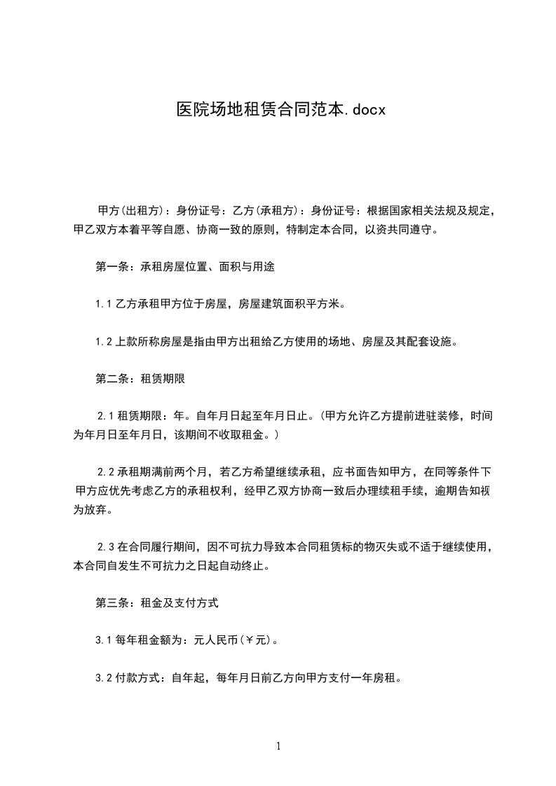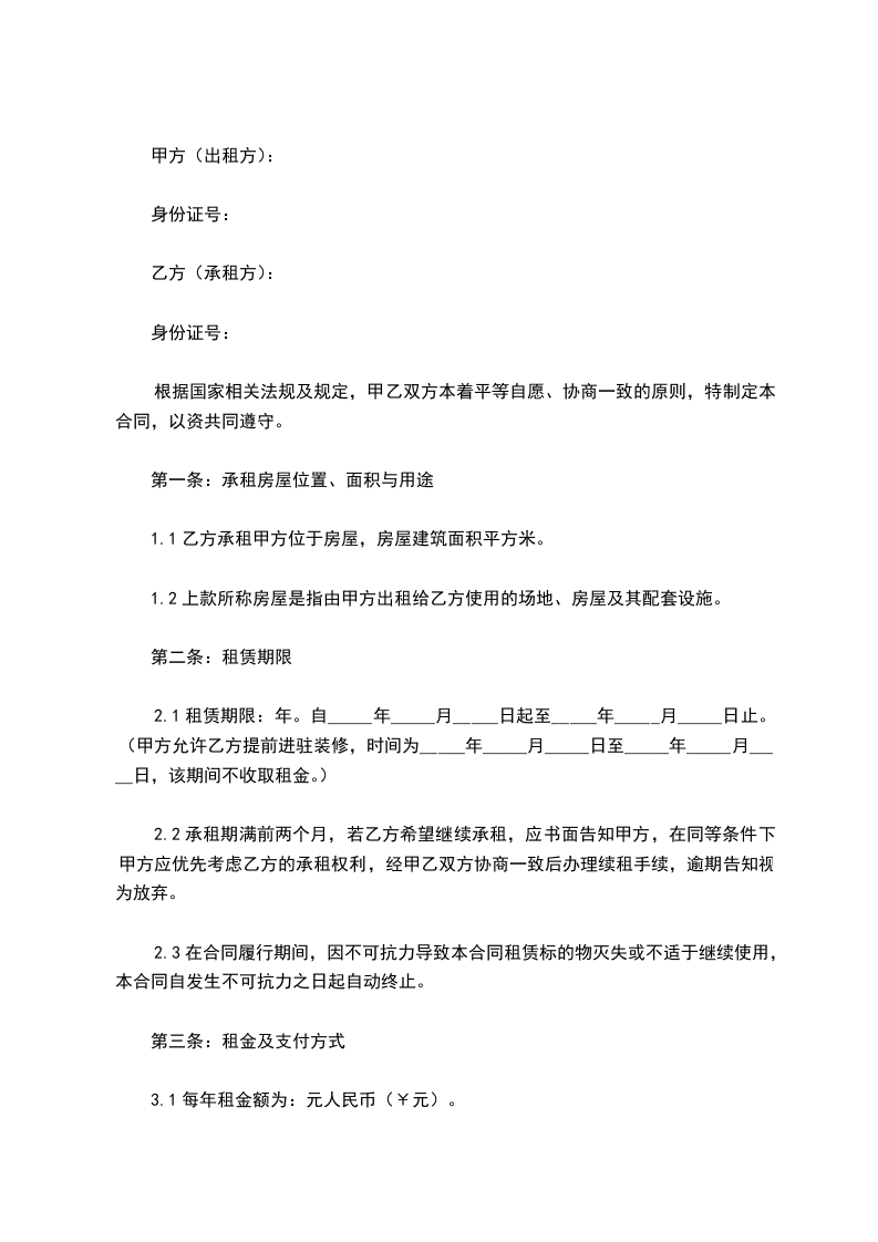 2.1租赁期限:年。自_____年_____月_____日起至_____年_____月_____日止。(甲方允许乙方提前进驻装修,时间为_____年_____月_____日至_____年_____月_____日,该期间不收取租金。)