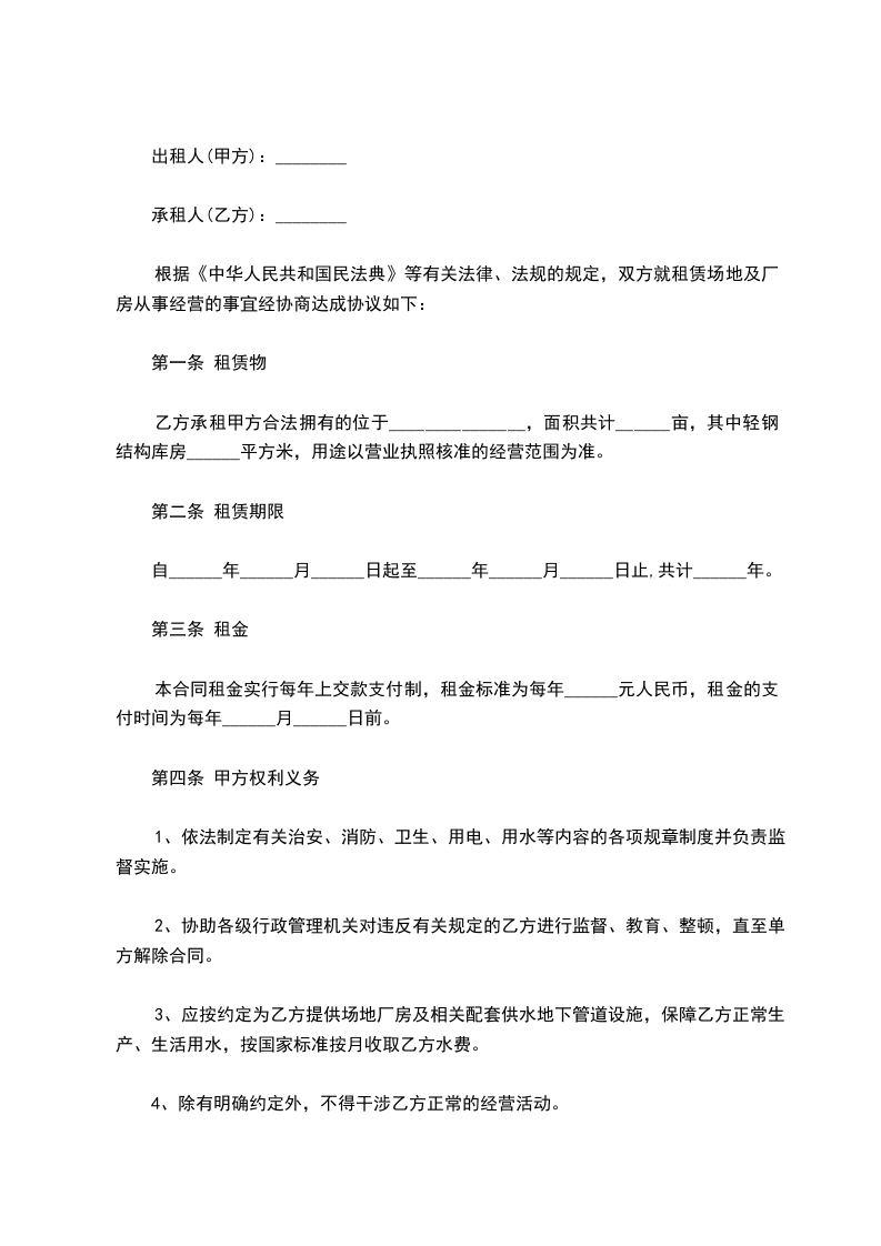 1.2上款所称房屋是指由甲方出租给乙方使用的场地、房屋及其配套设施。