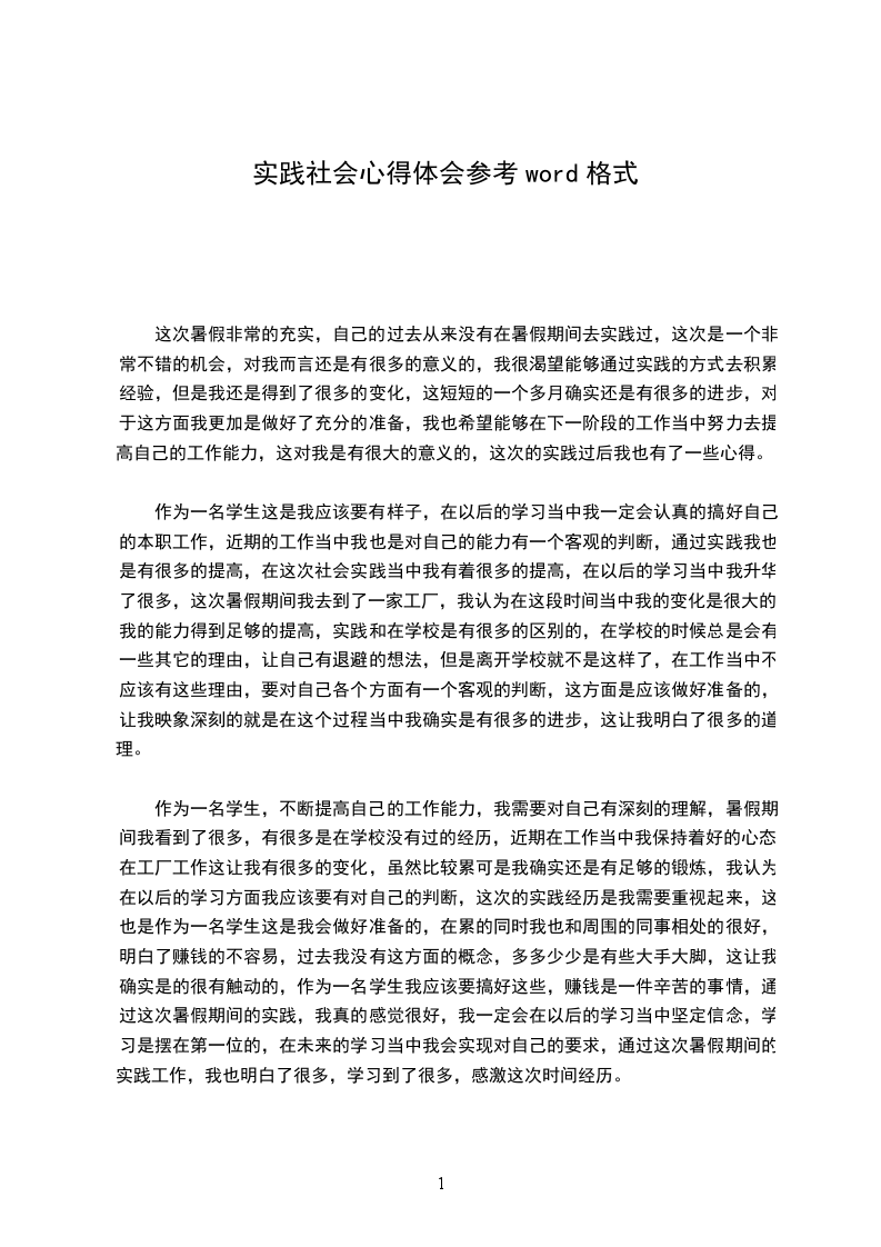 作为一名学生,不断提高自己的工作能力,我需要对自己有深刻的理解,暑假期间我看到了很多,有很多是在学校没有过的经历,近期在工作当中我保持着好的心态,在工厂工作这让我有很多的变化,虽然比较累可是我确实还是有足够的锻炼,我认为在以后的学习方面我应该要有对自己的判断,这次的实践经历是我需要重视起来,这也是作为一名学生这是我会做好准备的,在累的同时我也和周围的同事相处的很好,明白了赚钱的不容易,过去我没有这方面的概念,多多少少是有些大手大脚,这让我确实是的很有触动的,作为一名学生我应该要搞好这些,赚钱是一件辛苦的事情,通过这次暑假期间的实践,我真的感觉很好,我一定会在以后的学习当中坚定信念,学习是摆在第一位的,在未来的学习当中我会实现对自己的要求,通过这次暑假期间的实践工作,我也明白了很多,学习到了很多,感激这次时间经历。