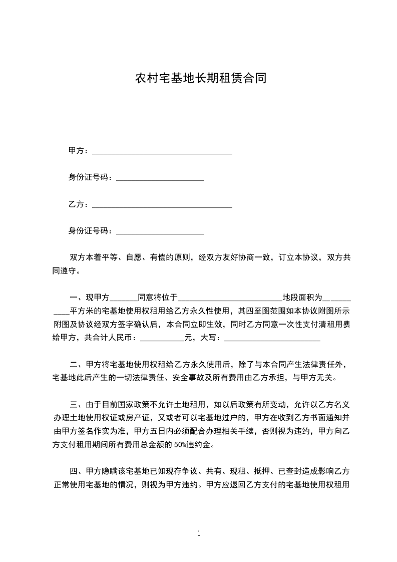 甲方(出租方): 身份证号: 电话: