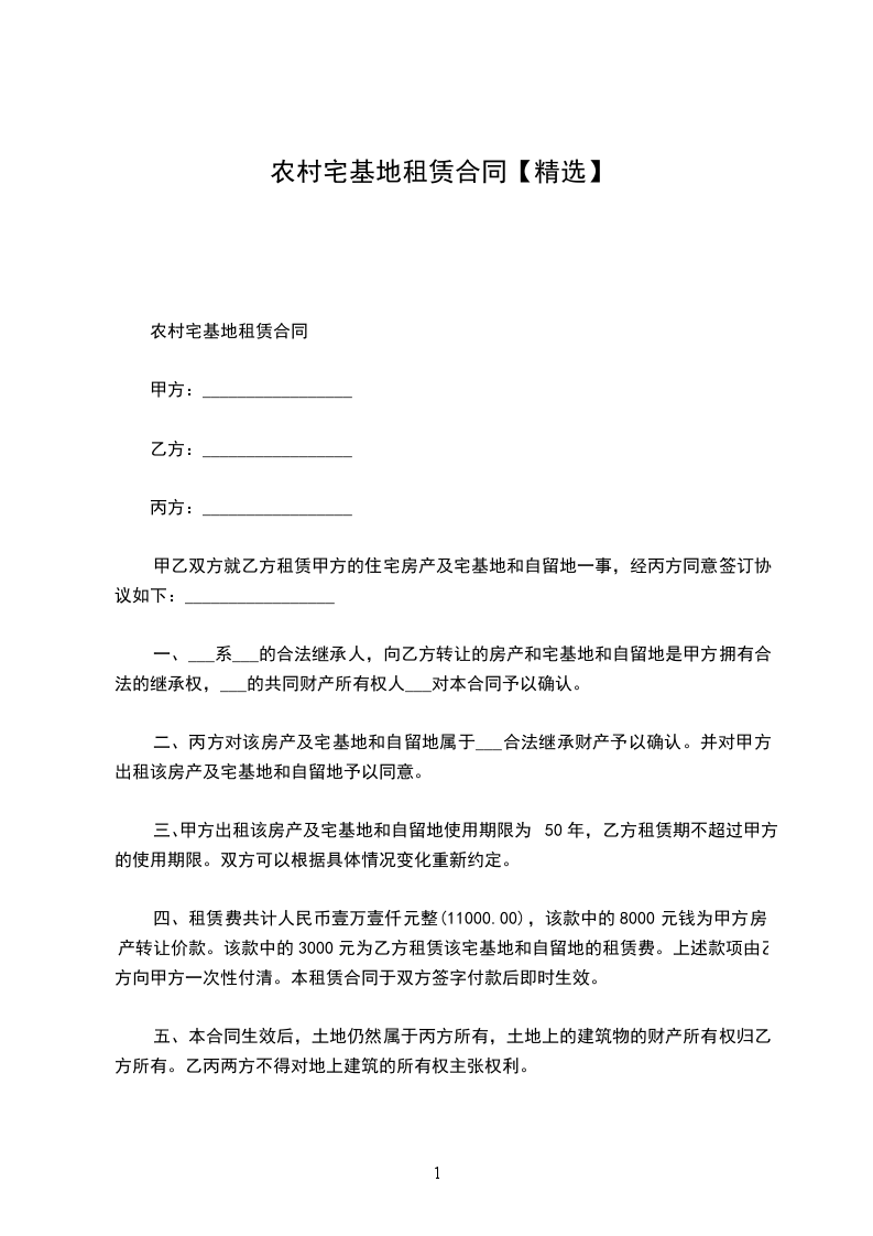 三、本协议项下租金及租金支付方式:乙方一次性付清 年租金 万元人民币,后续所有租赁期间均不再另行支付租金。