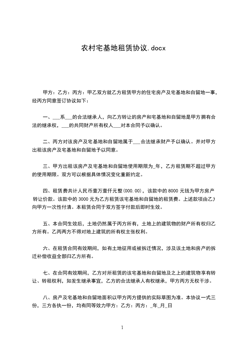 5、如遇国家征地、拆迁、本协议租赁物(包括原有和新建的房产、设施等全部资产)及宅基地使用权所获得一切补偿金、还迁房等全部收益一律归乙方享有,甲方须配合乙方办理相关手续。