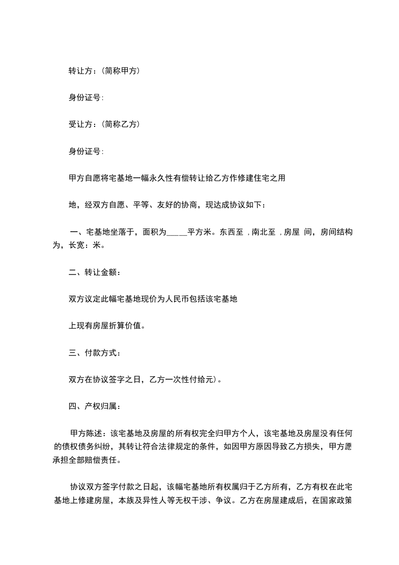 2、乙方自主使用甲方宅基地不受甲方限制,依建设规划建筑施工,建造新房产和设施。