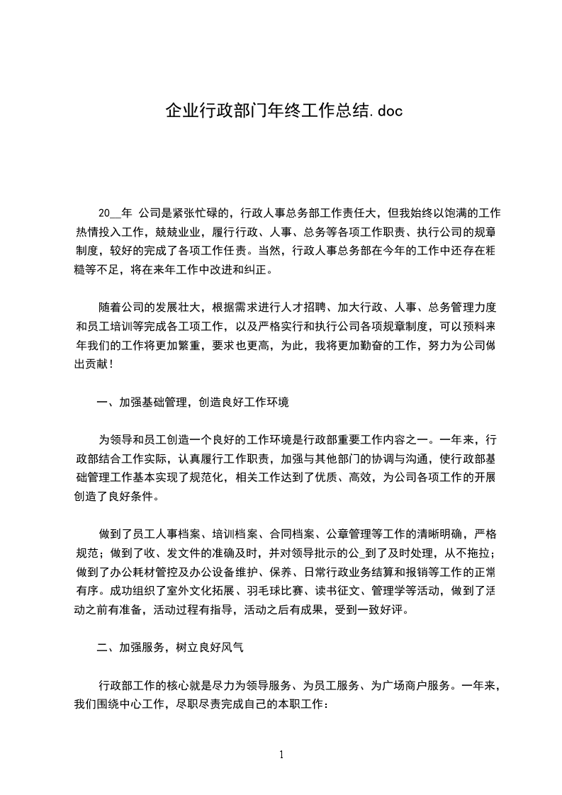 20__年 公司是紧张忙碌的,行政人事总务部工作责任大,但我始终以饱满的工作热情投入工作,兢兢业业,履行行政、人事、总务等各项工作职责、执行公司的规章制度,较好的完成了各项工作任责。当然,行政人事总务部在今年的工作中还存在粗糙等不足,将在来年工作中改进和纠正。