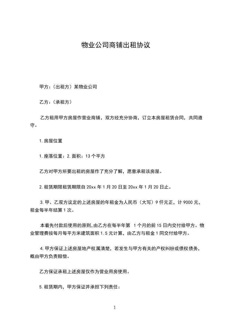 本着先付款后使用的原则,由乙方在每半年第1个月的前15日内交付给甲方。物业管理费按每月每平方米建筑面积1.5元计算,由乙方与租金1同交付给甲方。