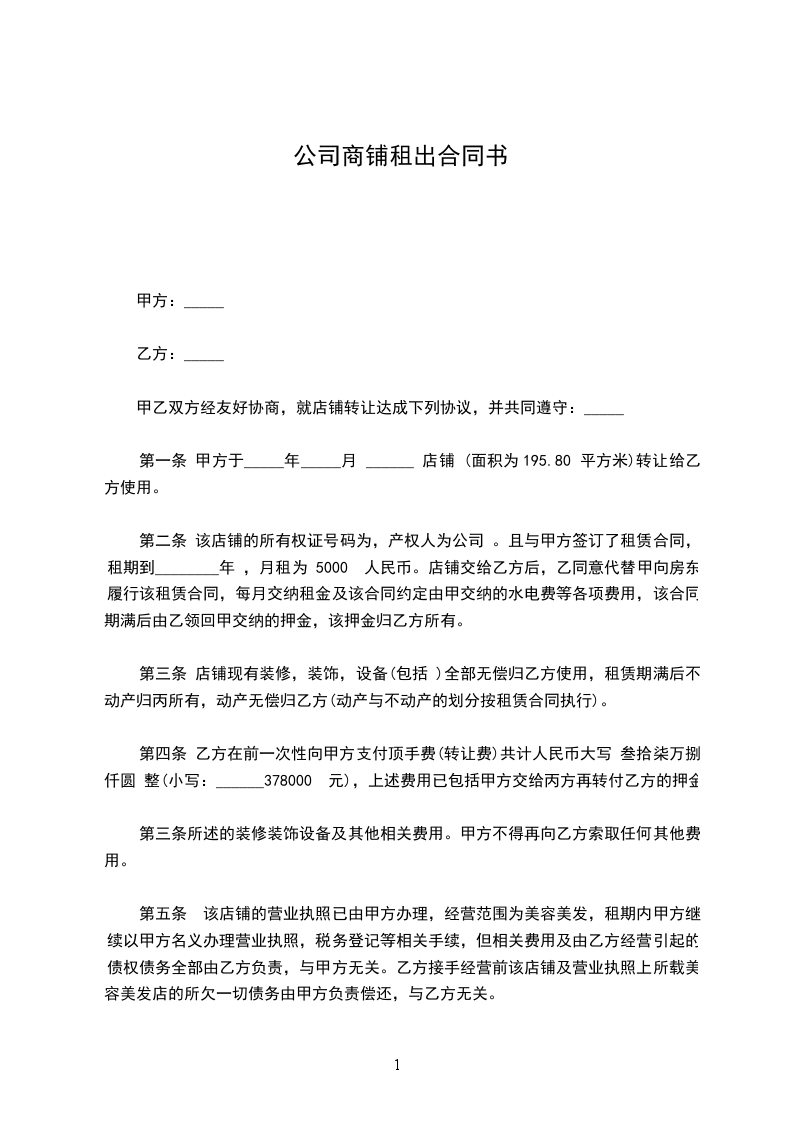 乙方租用甲方房屋作营业商铺,双方经充分协商,订立本房屋租赁合同,共同遵守。