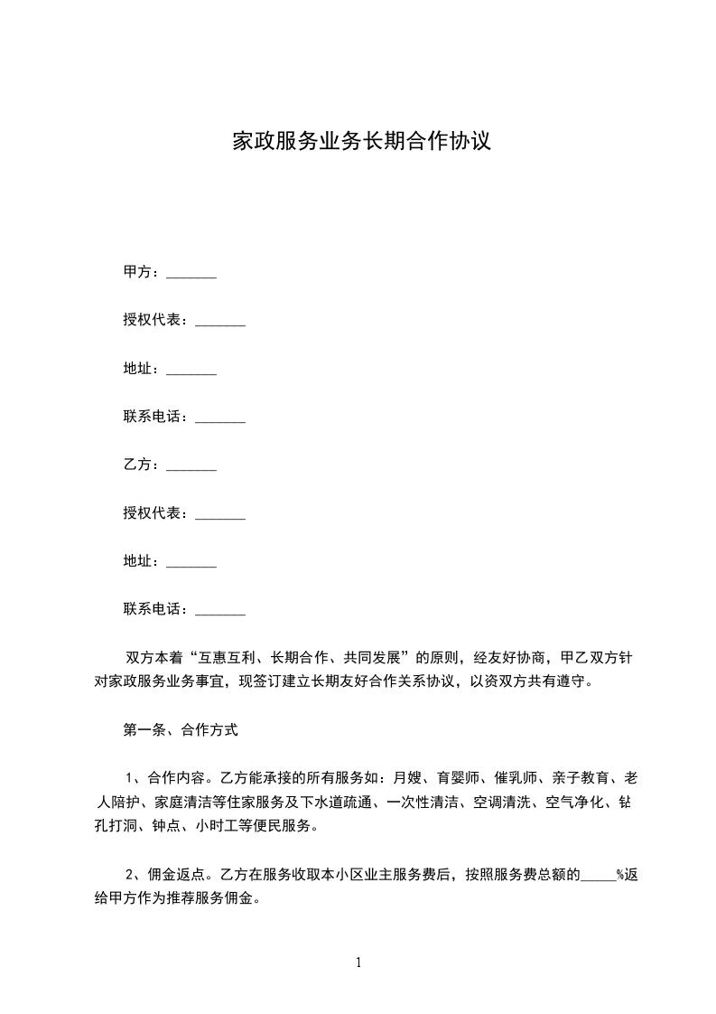三、每日服务费共计人民币_________元(大写)。每月月底由甲方派人上门收取或由家政服务员带回服务社同时甲方出具收款单据或正式发票,在收到票据之前,乙方不得将任何钱款交给甲方家政服务员,否则甲方将不予承认此收款行为。