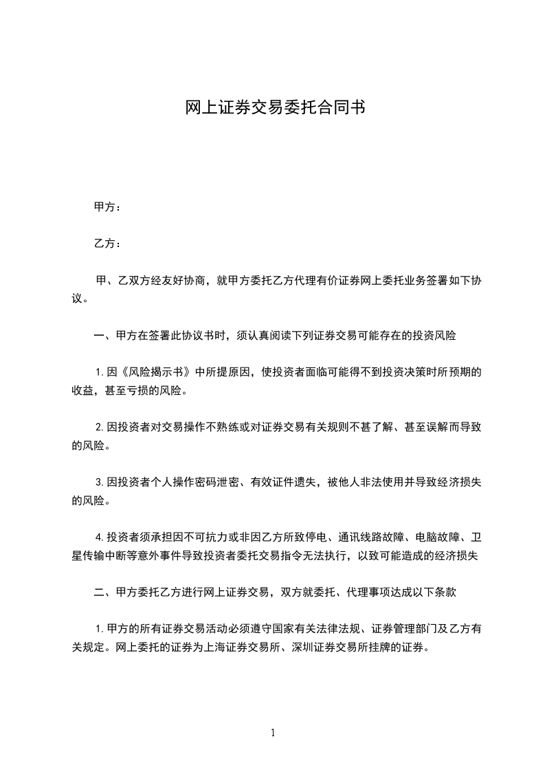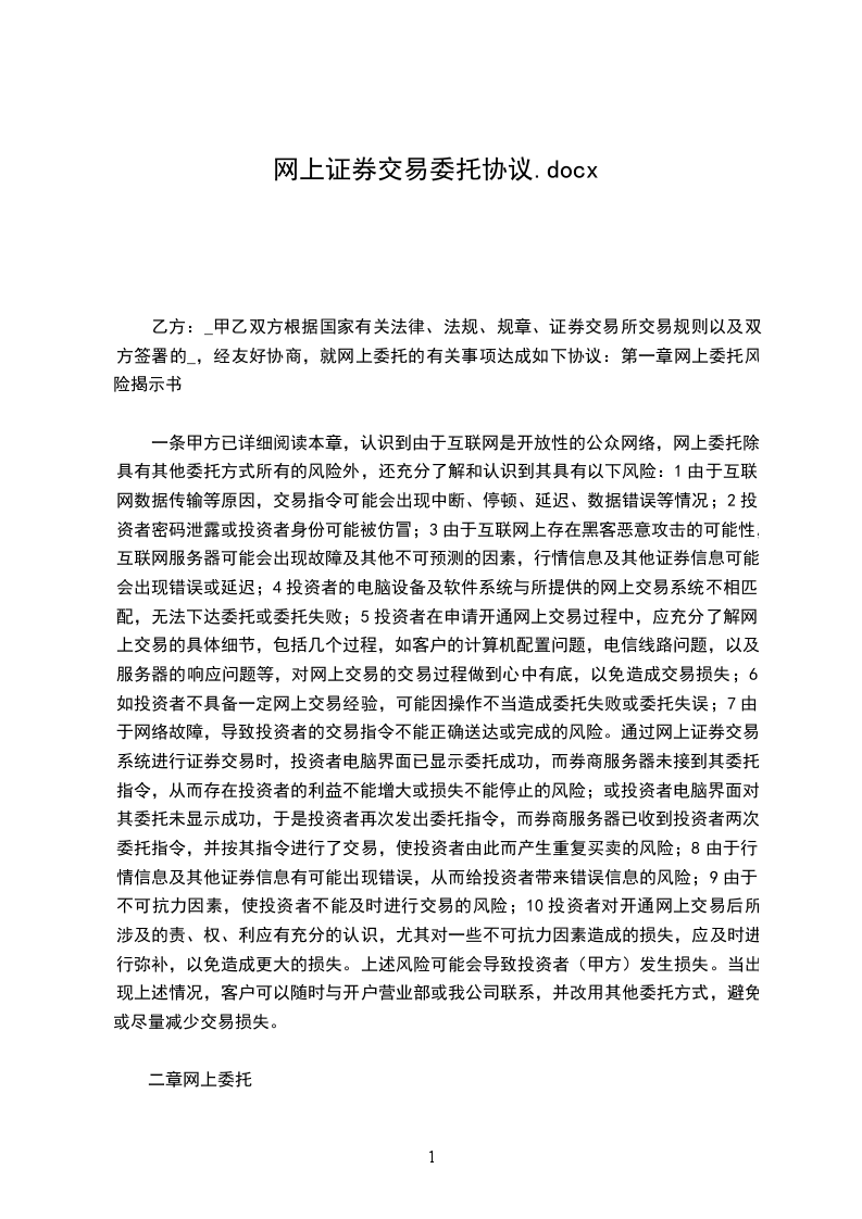 甲、乙双方经友好协商,就甲方委托乙方代理有价证券网上委托业务签署如下协议。