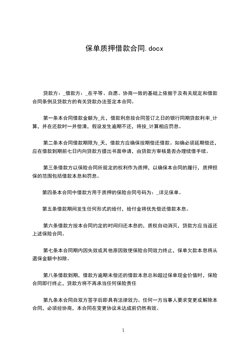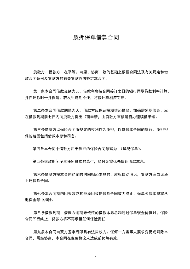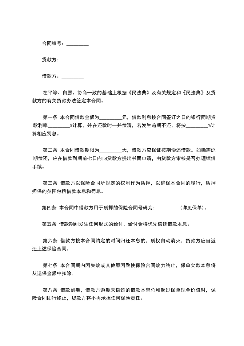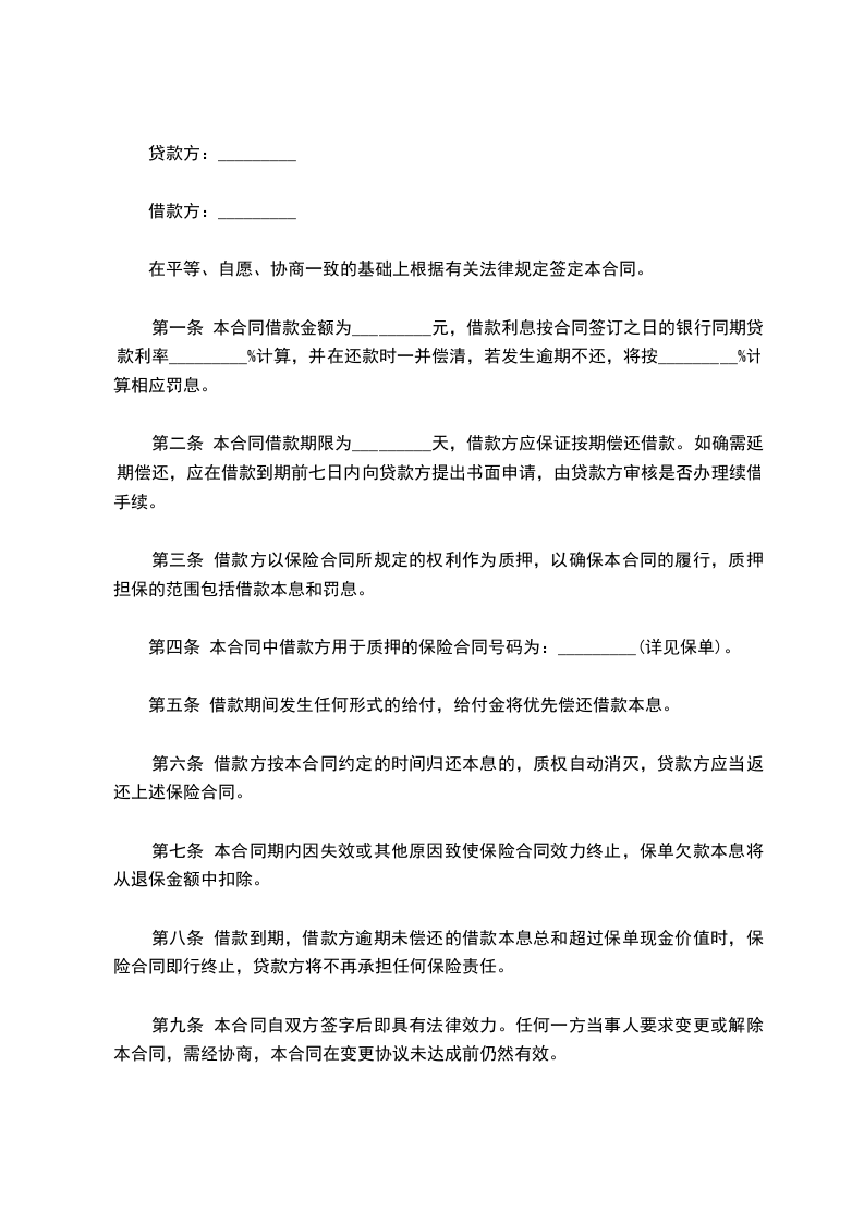第四条 本合同中借款方用于质押的保险合同号码为:_________(详见保单)。