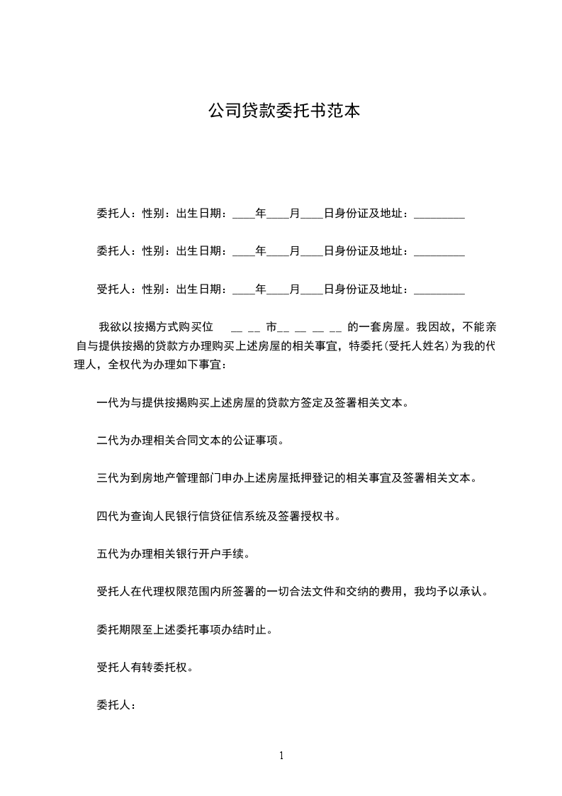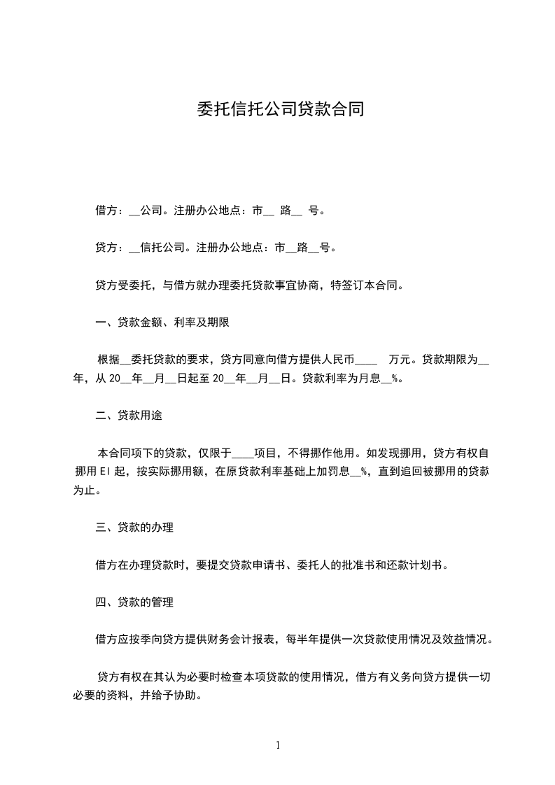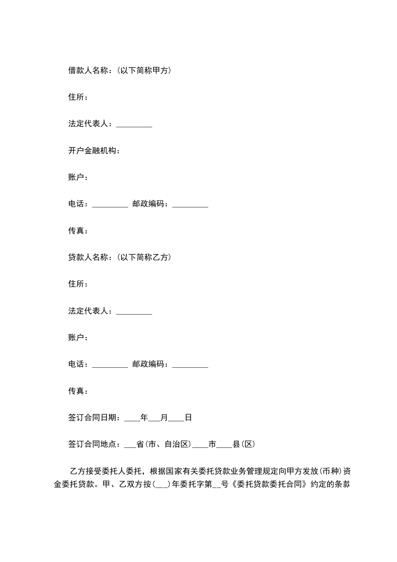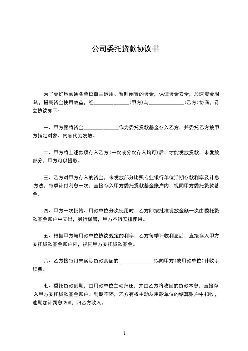 一、甲方愿将资金______________作为委托贷款基金存入乙方,并委托乙方按甲方指定对象、内容代为发放。