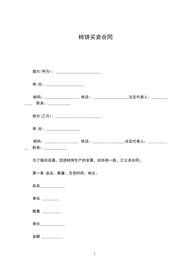 为了搞活流通,促进柿饼生产的发展,经协商一致,订立本合同。