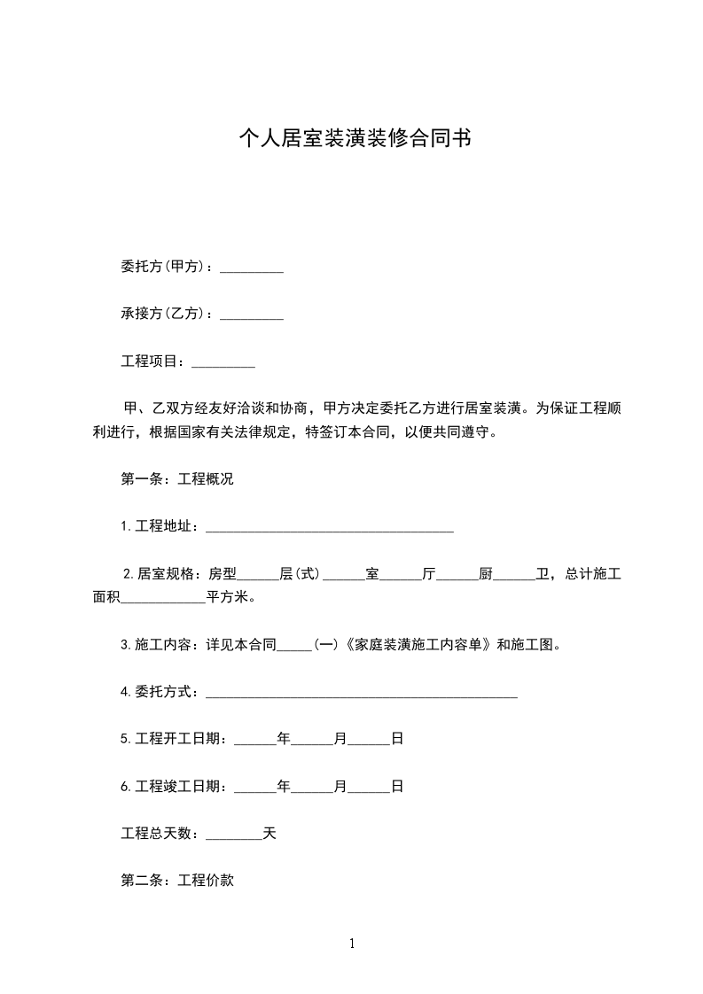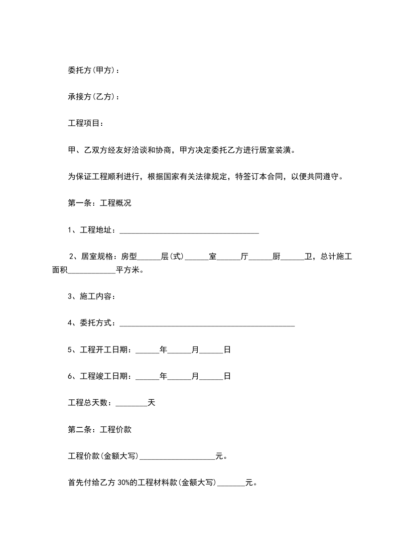 工程价款(金额大写)___________________元,详见本合同附件(二)《家庭装潢工程材料预算表》。