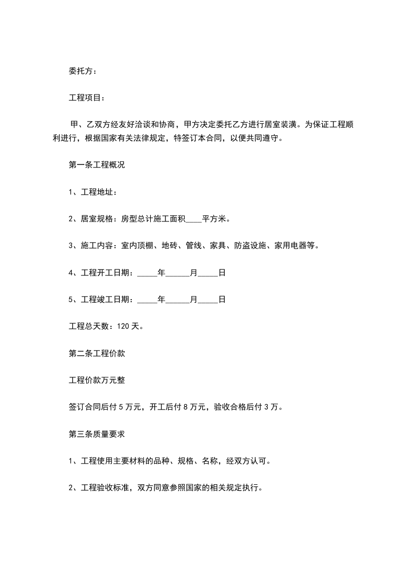 甲、乙双方经友好洽谈和协商,甲方决定委托乙方进行居室装潢。为保证工程顺利进行,根据国家有关法律规定,特签订本合同,以便共同遵守。