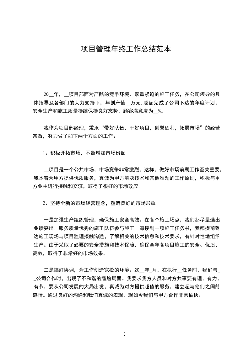 20__年,__项目部面对严酷的竞争环境、繁重紧迫的施工任务,在公司领导的具体指导及各部门的大力支持下,年创产值__万元,超额完成了公司下达的年度计划,安全生产和施工质量持续保持良好态势,顾客满意度为__%。