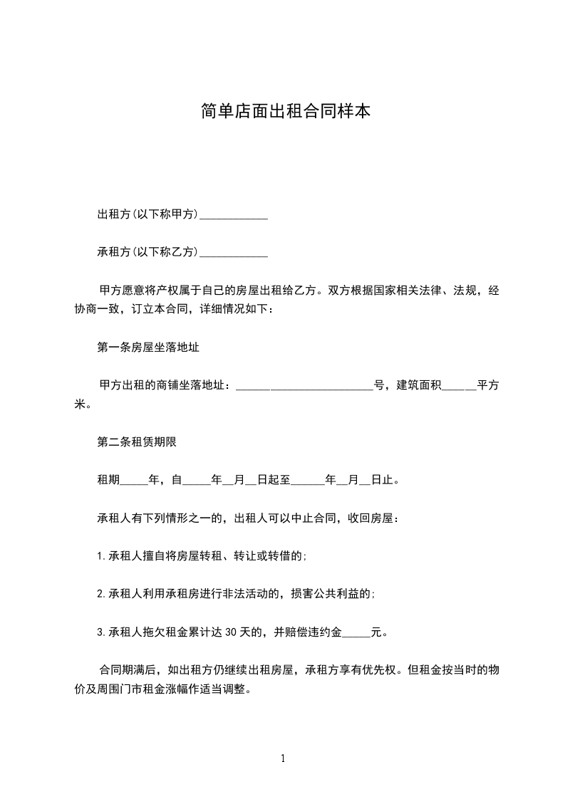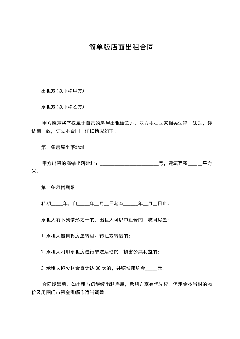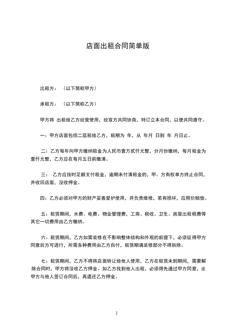 一:甲方店面包括二层租给乙方,租期为 年,从 年月 日到 年 月日止。