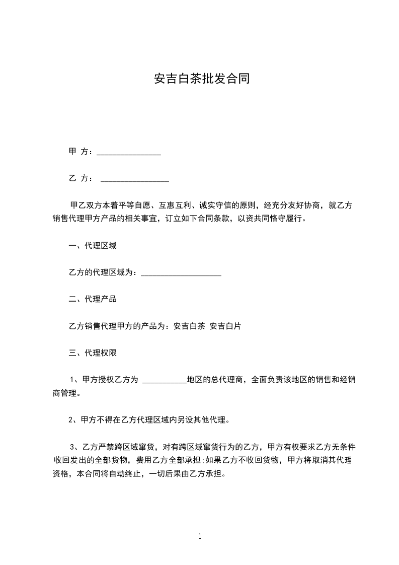 乙方销售代理甲方的产品为:安吉白茶 安吉白片