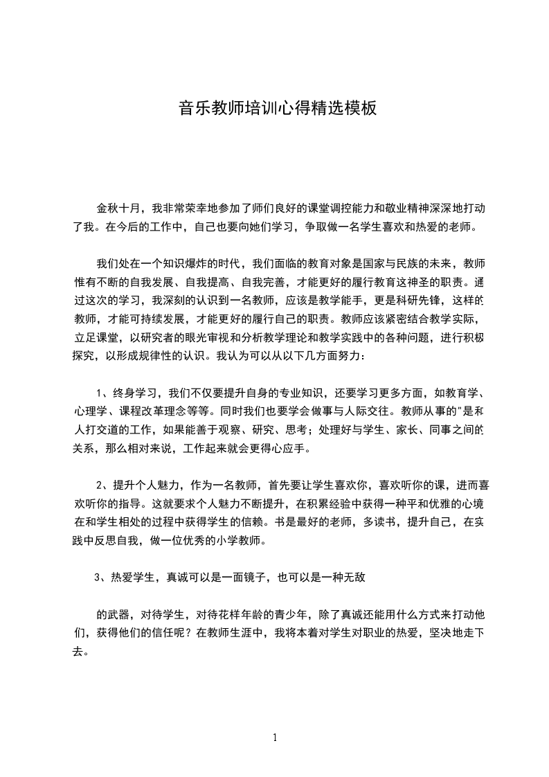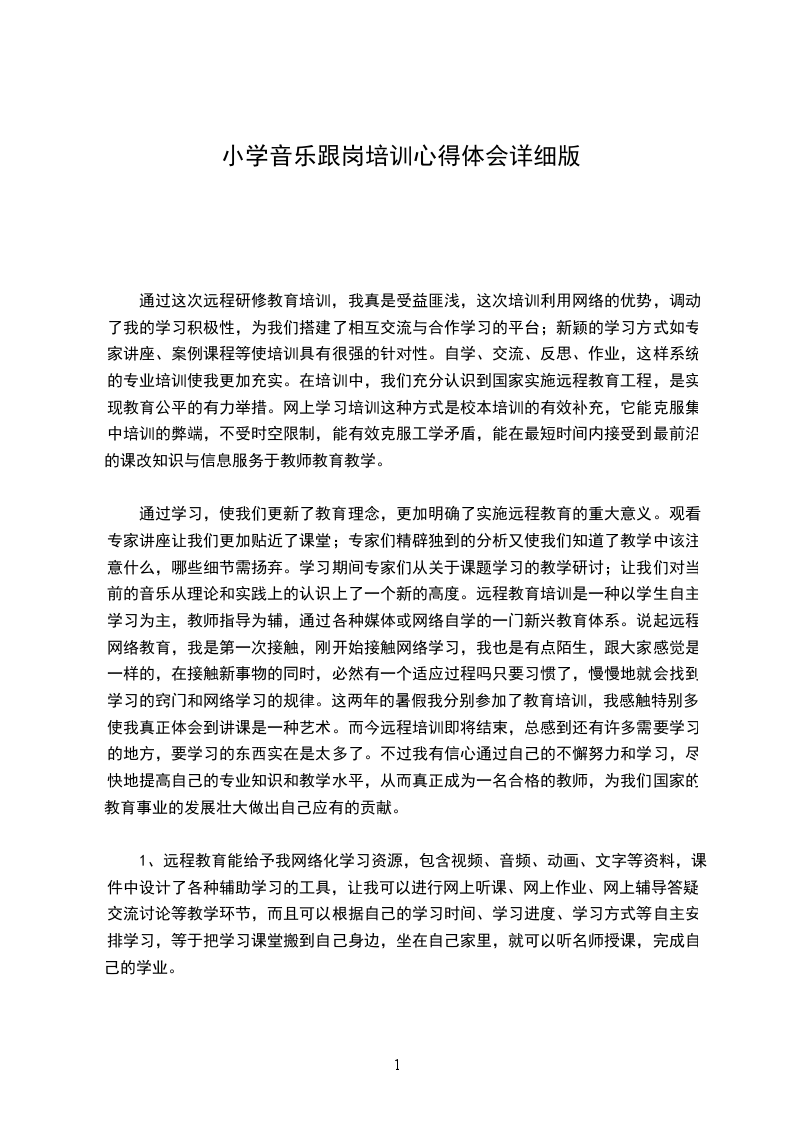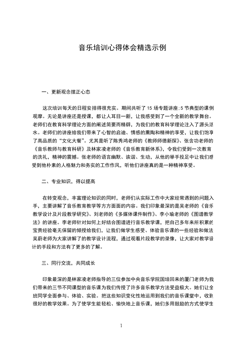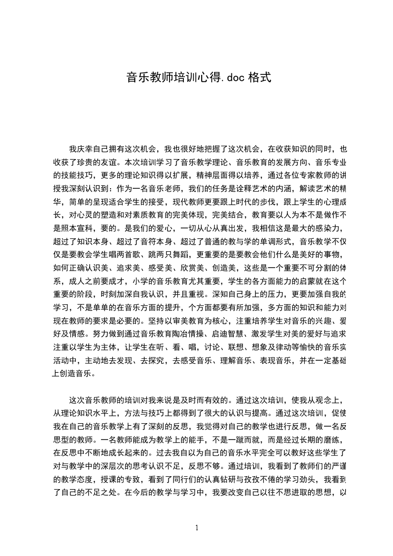 培训是一个反思进步的过程。二十天的培训学习是短暂而辛苦的,但留给我们的记忆和思考却是永恒的。通过这次培训,我进一步提高了认识,理清了思路,学到了新的教学理念,找到了自身的差距和不足。我要把汲取到的先进理念、思想运用到工作中去,让此次培训的价值在工作中得到最大的体现。作为一名音乐教师,我们要努力发挥自己的专业素质,把爱与知识播送给每一位孩子,让他们健康、个性地成长。使用各种教学方法,让学生去感受、理解、表现音乐;给他们富于旋律的人生,享受人生的旋律。