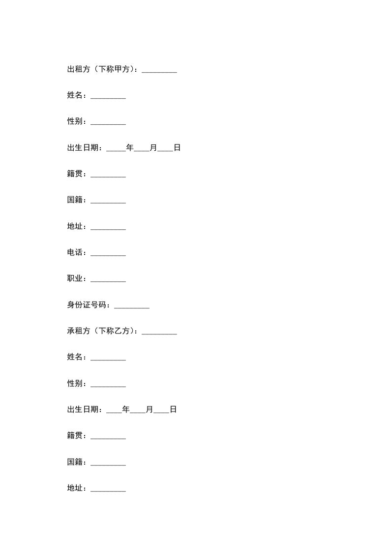 承租方(下称乙方):_________