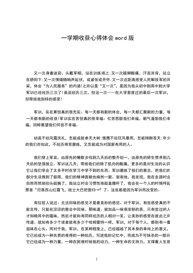 又一次身着迷彩,头戴军帽,站在训练场上;又一次腿脚酸痛,汗流浃背,站立在骄阳下;又一次情绪随哨声起伏,或紧张或开怀;又一次近距离感受人民解放军的风采,体会“为人民服务”的内涵!之所以是“又一次”,是因为我从初中到高中到大学,军训已经经历三次了!虽说经历三次,但这一次——在大学里度过的最后一次军训,却带给我别样的感受!