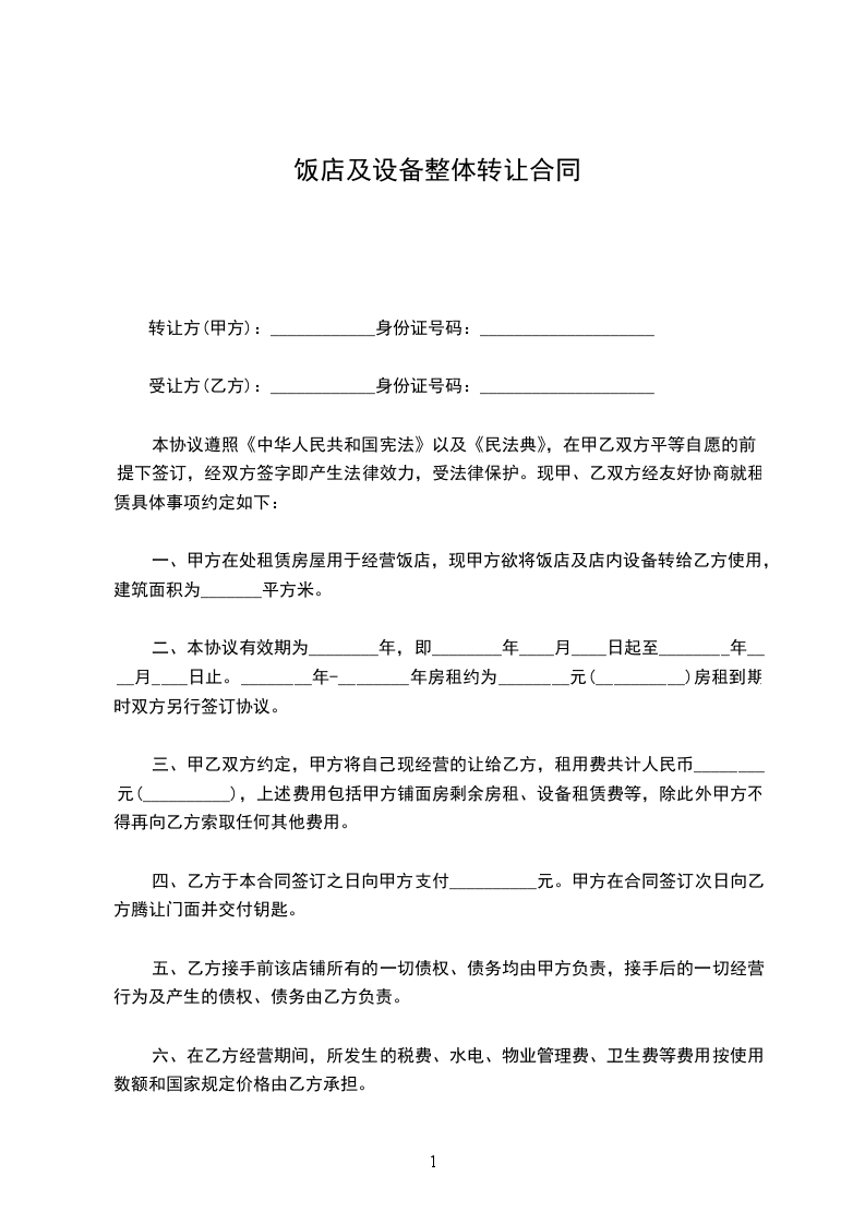第四条乙方在_______年__月__日一次性向甲方支付转让费,共计人民币大写:___元整(小写:_________元),上述费用已包括甲方支付给丙方或其他第三方与公司关联的所有费用,第三条所述的装修装饰设备及其他相关费用,甲方不得再向乙方索取任何其他费用。