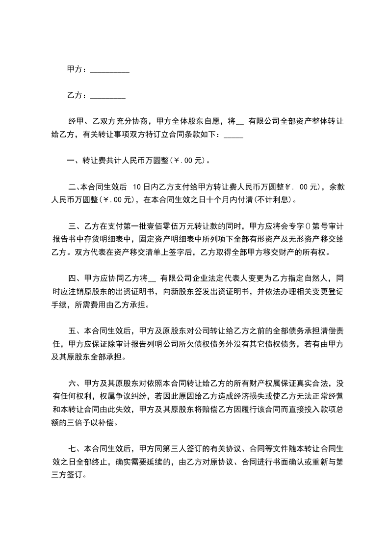 甲乙双方经友好协商,就__公司整体设施转让达成下列协议,并共同遵守: