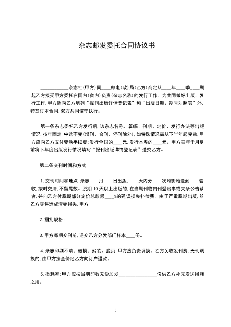 5.损耗率:甲方应按当期印数无偿加发________________份供乙方补充发送损耗之用。