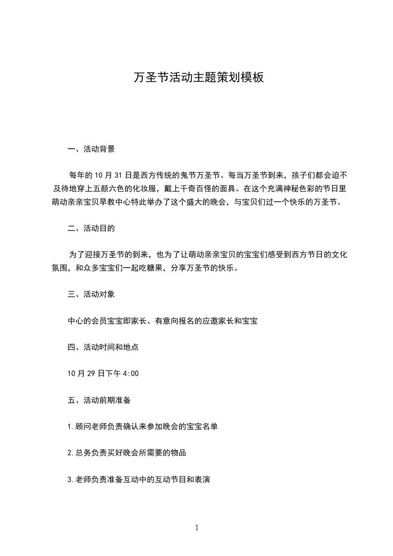 1、20__年 10月31日上午8点,所有教职员工到校布置场地,准备好节日当天的游戏道具。