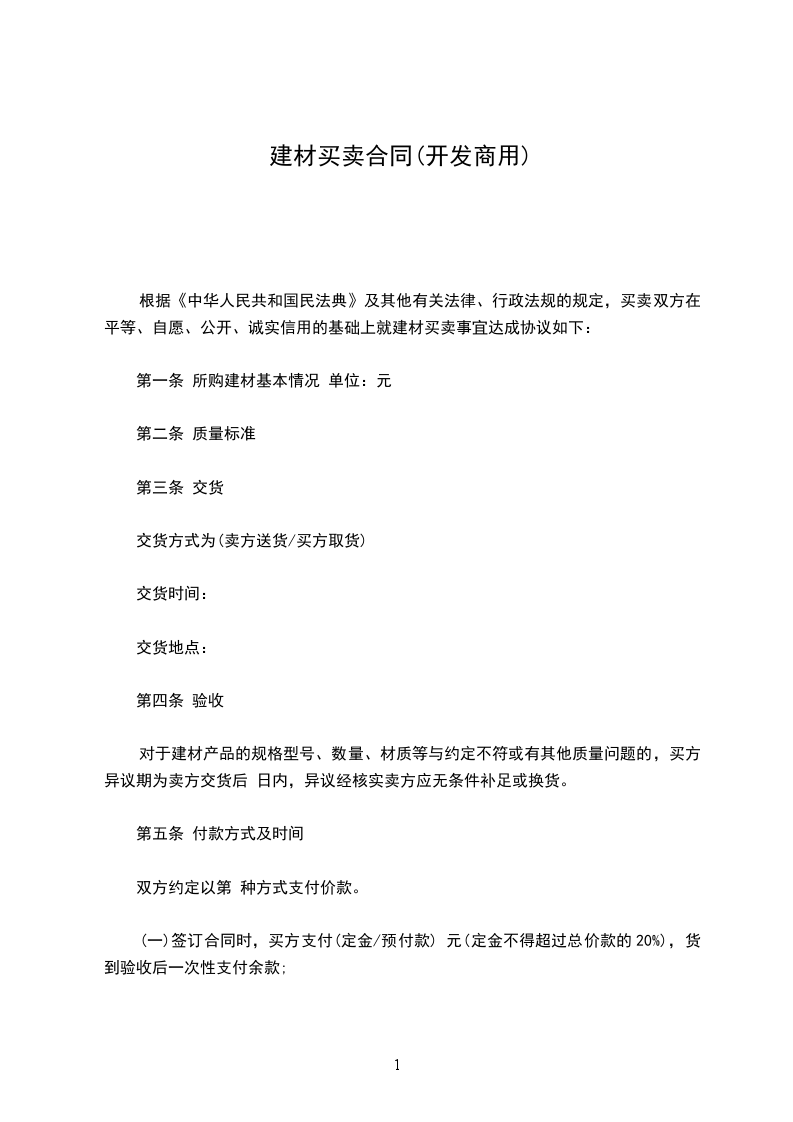 根据《中华人民共和国民法典》及其他有关法律、行政法规的规定,买卖双方在平等、自愿、公开、诚实信用的基础上就建材买卖事宜达成协议如下: