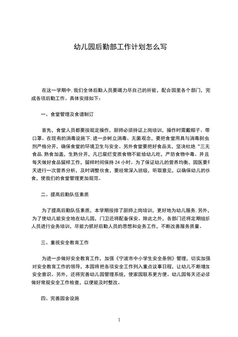 在这一学期中,我们全体后勤人员要竭力尽自己的所能,配合园里各个部门,完成各项后勤工作。具体安排如下: